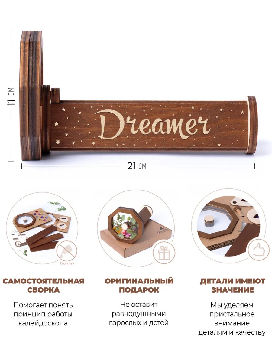 Деревянный калейдоскоп с гравировкой "Dreamer", Dreamer Kids, оригинальный подарок для детей и взрослых интересное: