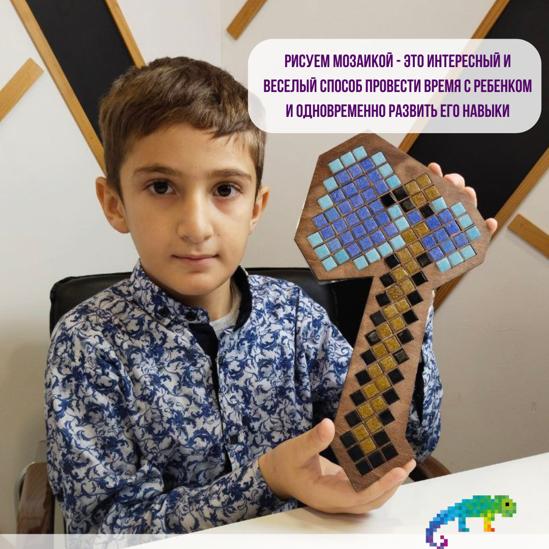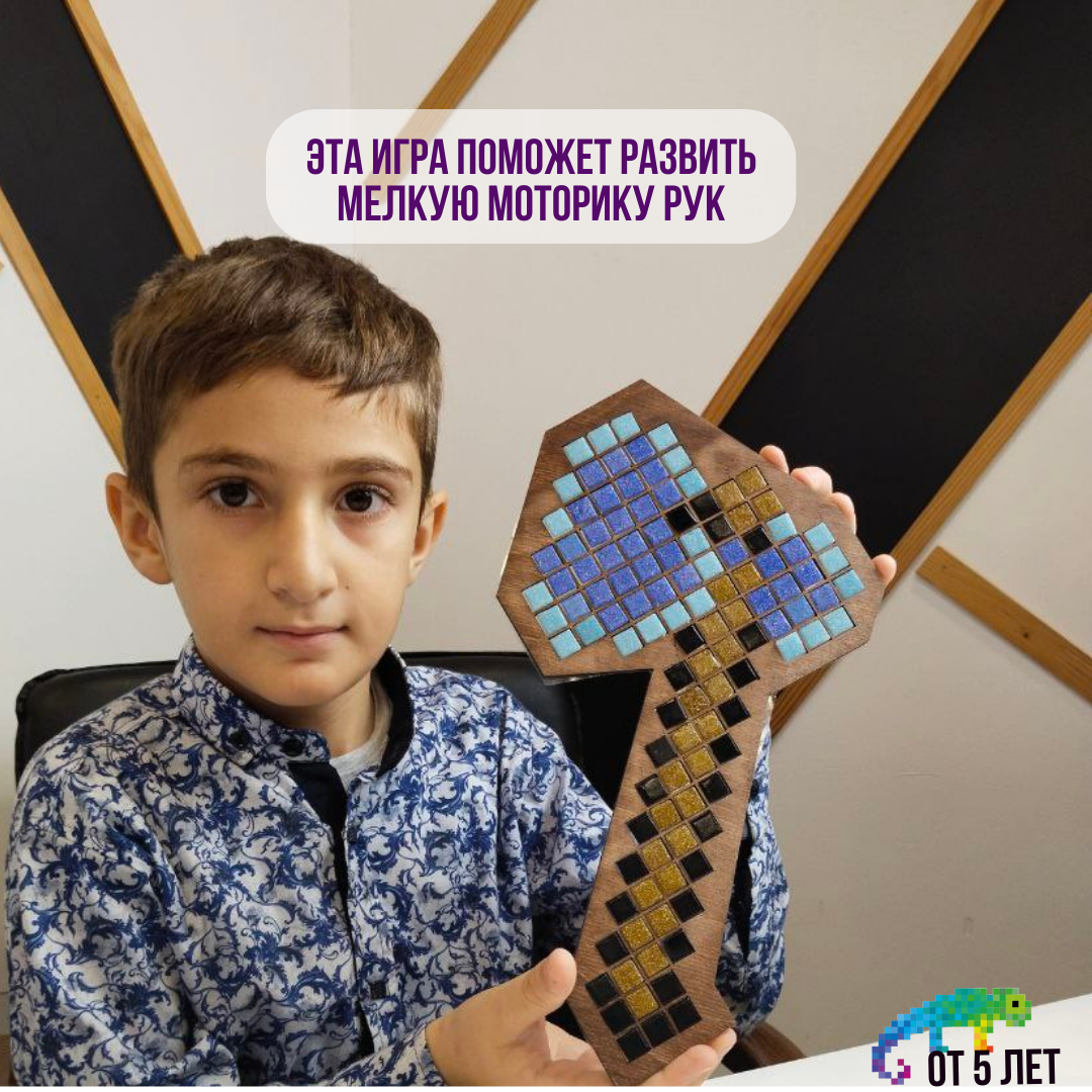 Стеклянная мозаика Топор из Майнкрафт от бренда Рисуем Мозаикой интересное: