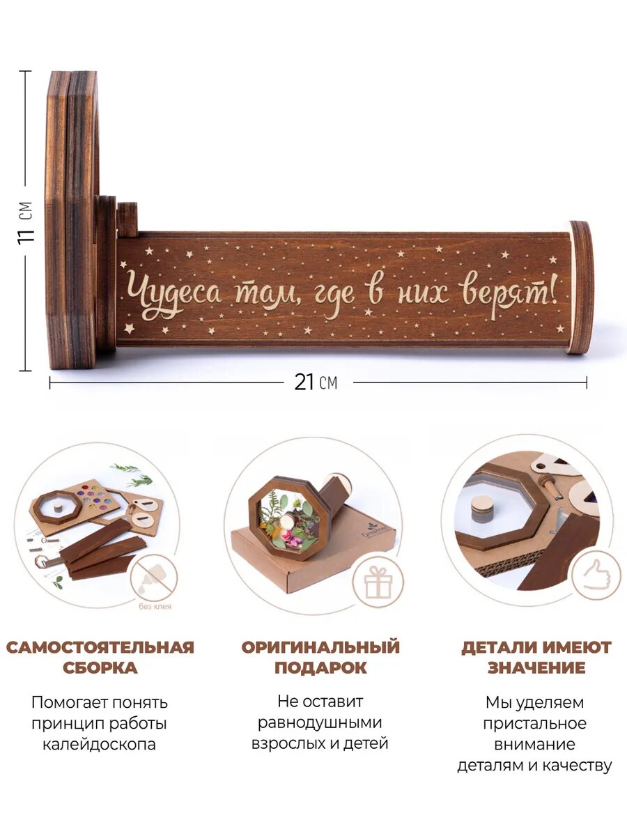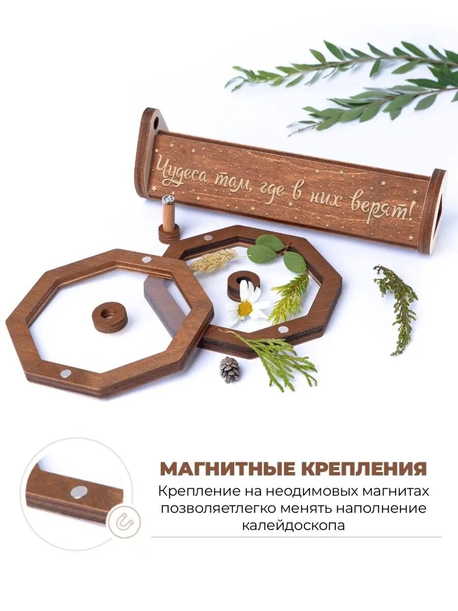 Деревянный калейдоскоп с гравировкой "Чудеса там, где в них верят", Dreamer Kids, подарок для детей и взрослых интересное: