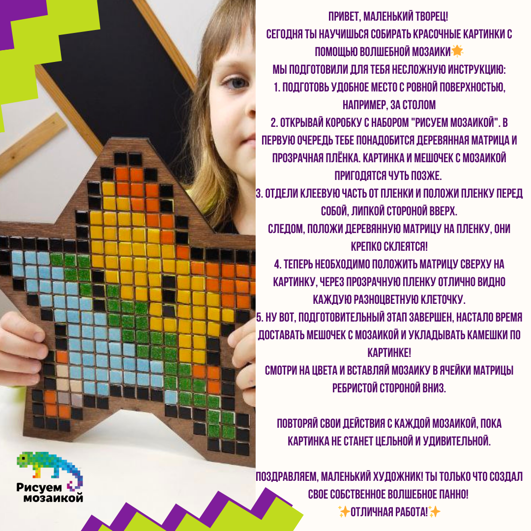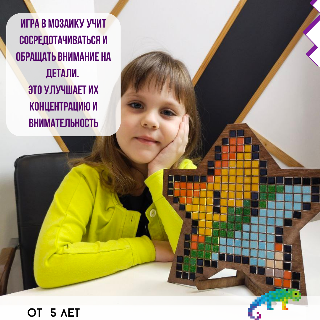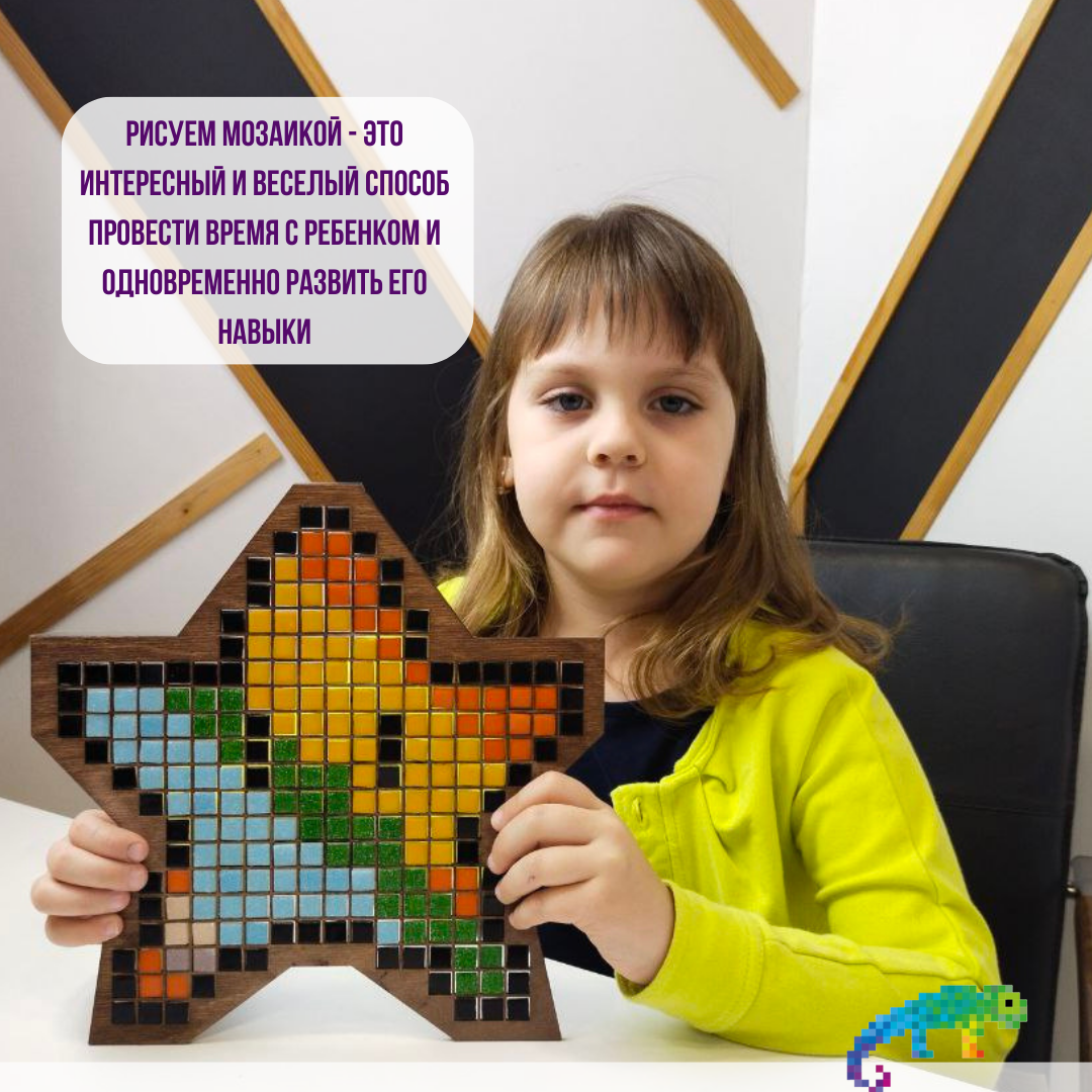 Стеклянная мозаика для детей Звезда, от бренда "Рисуем Мозаикой" интересное: