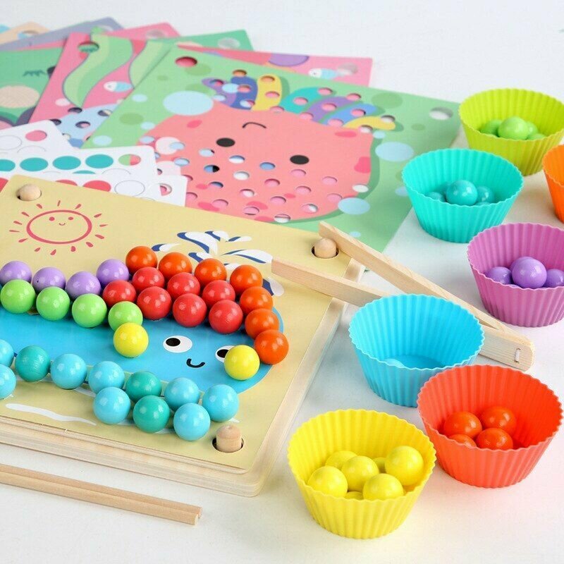 Мозаика с шариками деревянная + сортировка по цветам, развивающая игра для детей интересное: