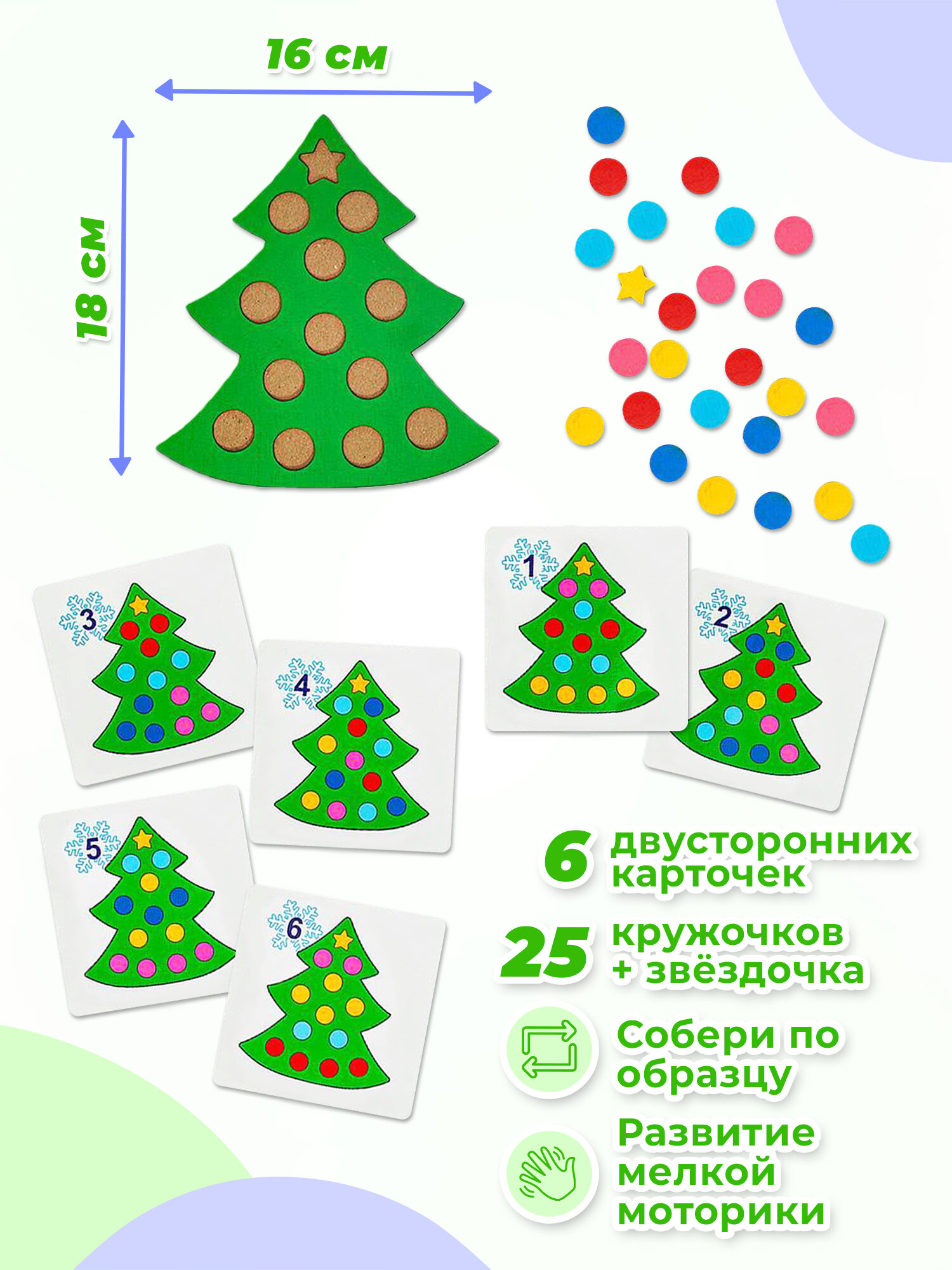 Деревянная мозаика-сортер Smile Decor "Умная елочка", елка с набором карточек интересное: