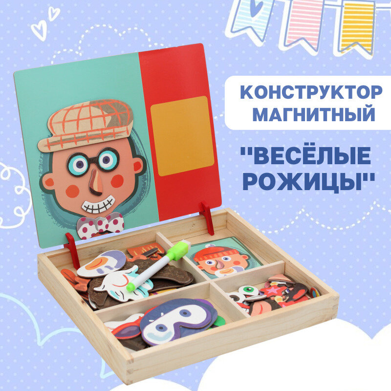 Купить Конструктор магнитный «Весёлые рожицы»: карточки, маркер, магнитные элементы