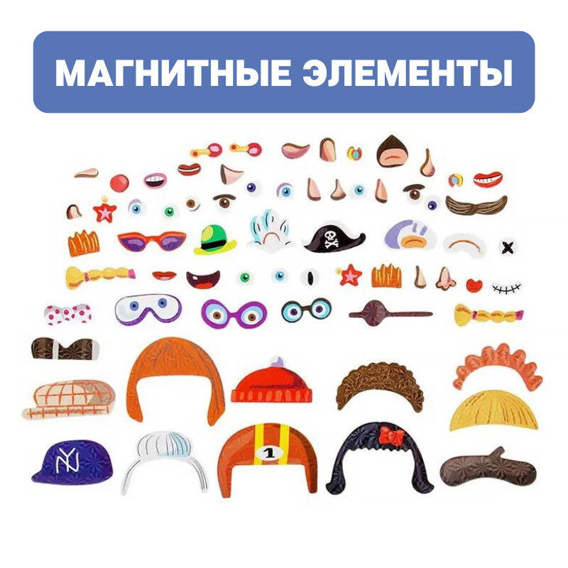 Конструктор магнитный «Весёлые рожицы»: карточки, маркер, магнитные элементы интересное: