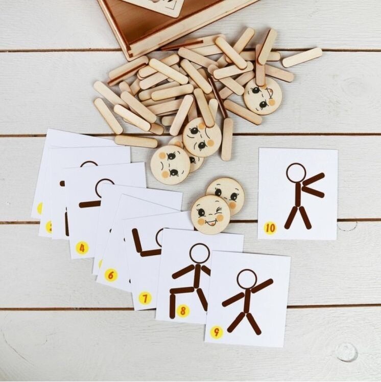 Деревянный конструктор-мозаика из палочек Smile Decor "Человечки" с набором карточек, 50 деталей интересное: