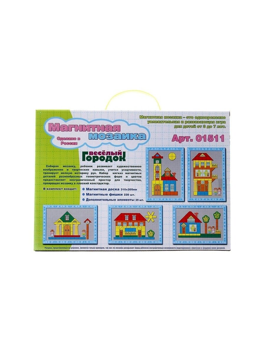 Купить Мозаика магнитная. Веселый городок (, 220 магнитных фишек, 30 дополнительных элементов)
