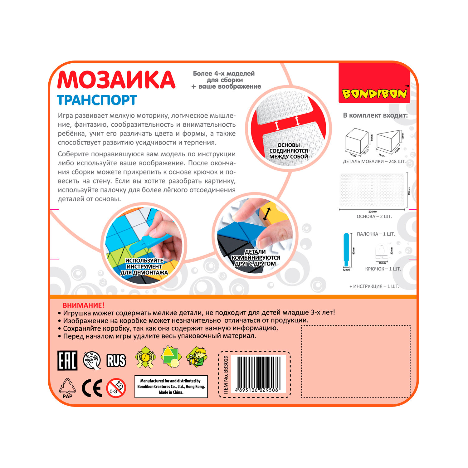 Логические, развивающие игры и игрушки Bondibon Мозаика «транспорт», 248 дет, BOX 22x4.5x19 см интересное: