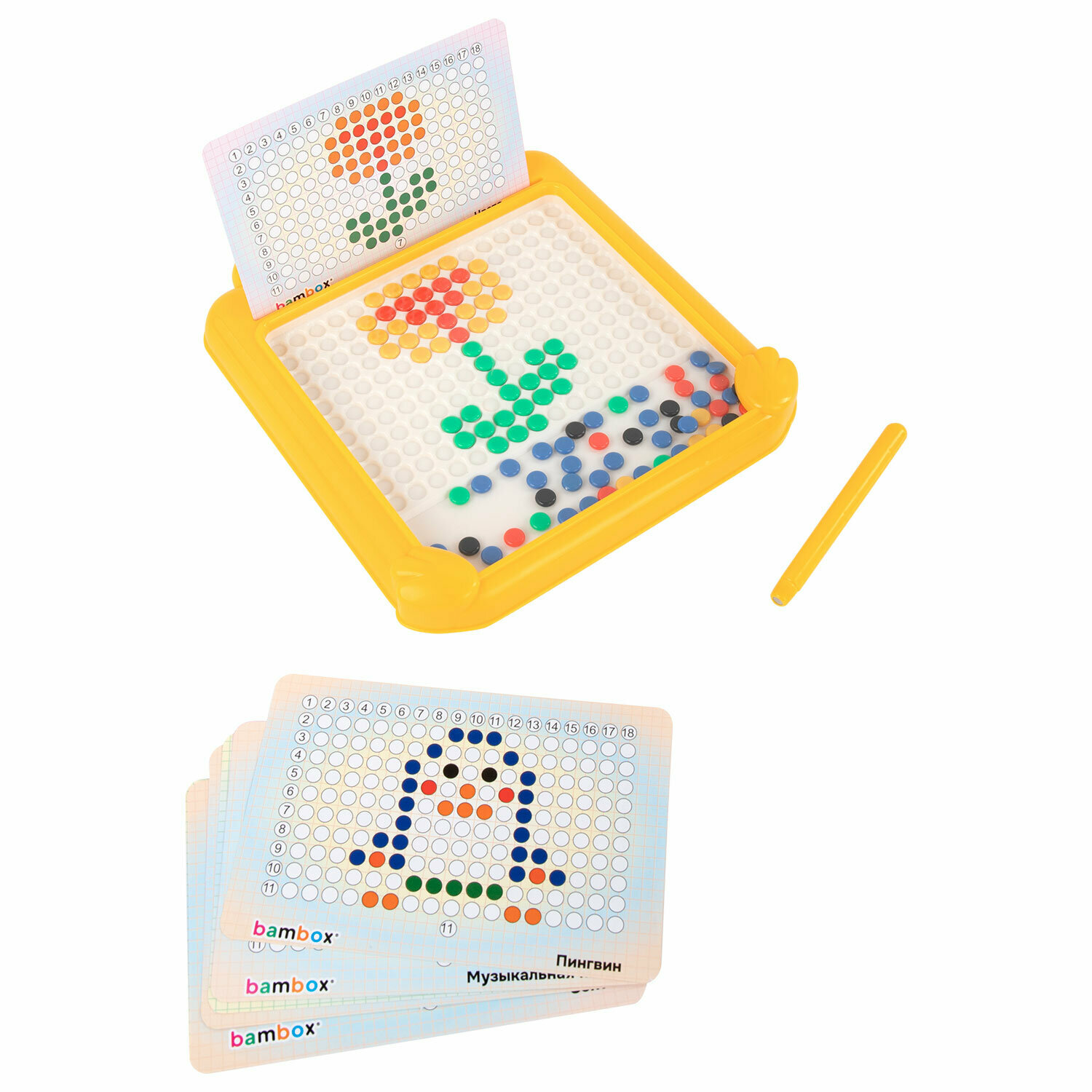 Мозаика магнитная развивающая для детей "Утенок", стилус, 101 магнит, 10 карточек, BAMBOX, 665888 интересное: