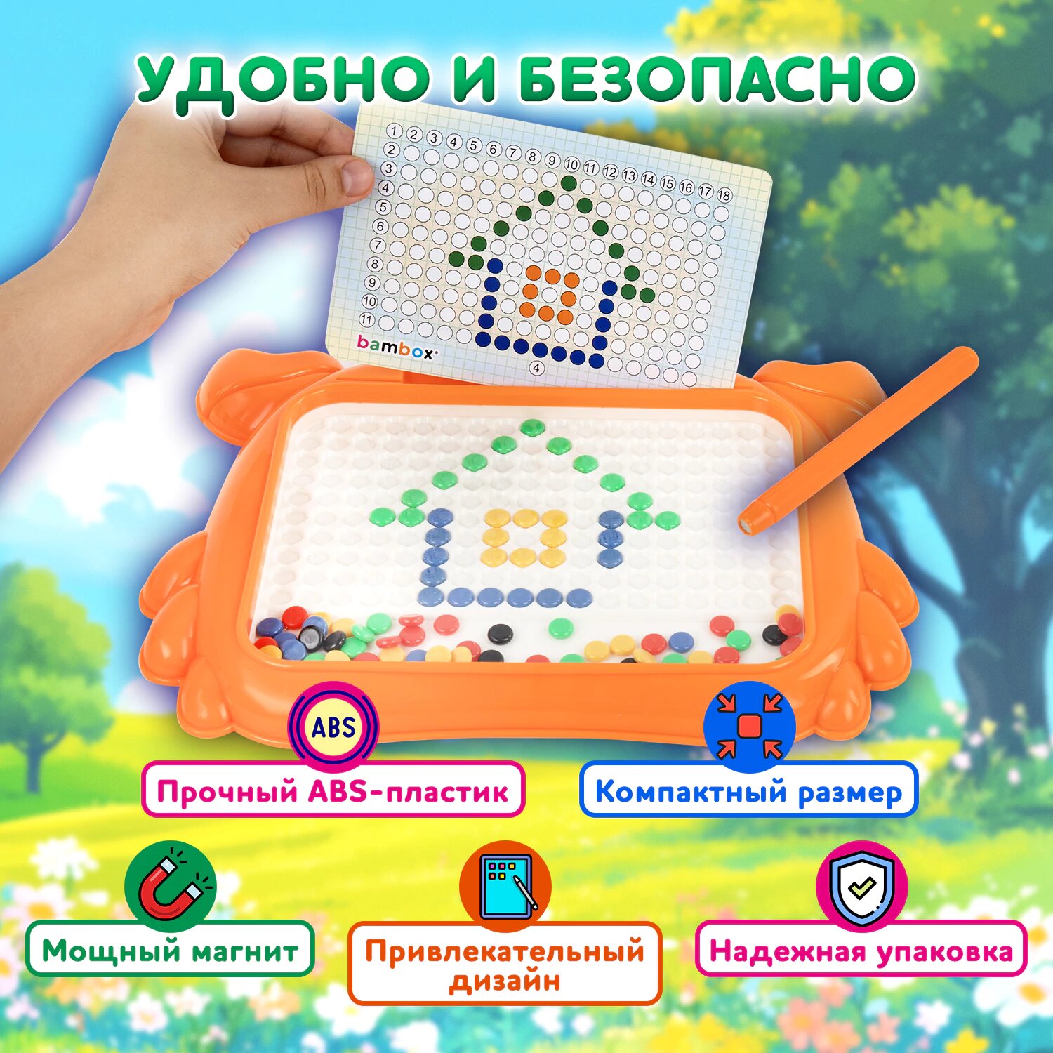 Мозаика магнитная для детей Краб, магнитный планшет детский со стилусом, 101 магнит, 10 карточек, развивающие игрушки от 3 лет, Bambox, 665889 интересное: