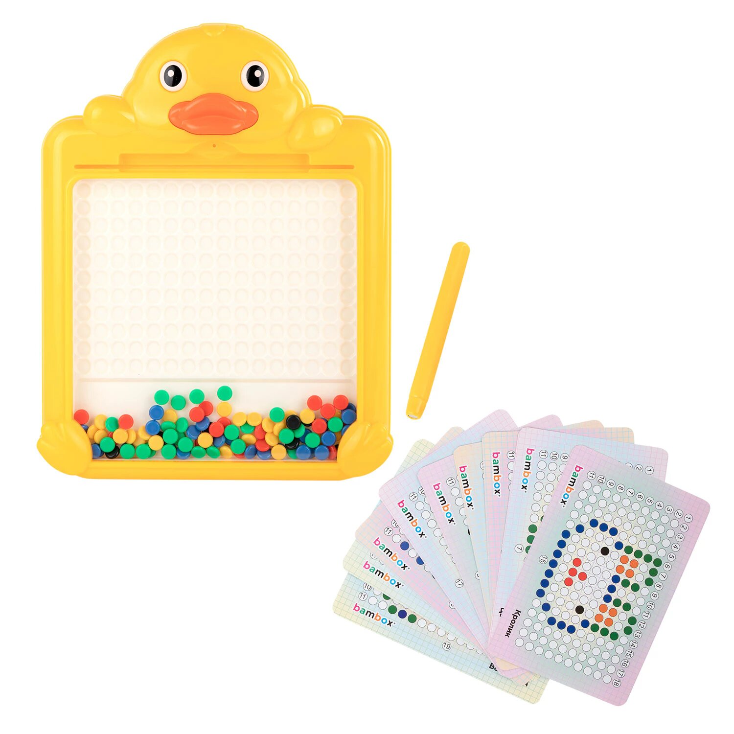 Купить Мозаика магнитная для детей Утенок, магнитный планшет детский со стилусом, 101 магнит, 10 карточек, развивающие игрушки от 3 лет, Bambox, 665888