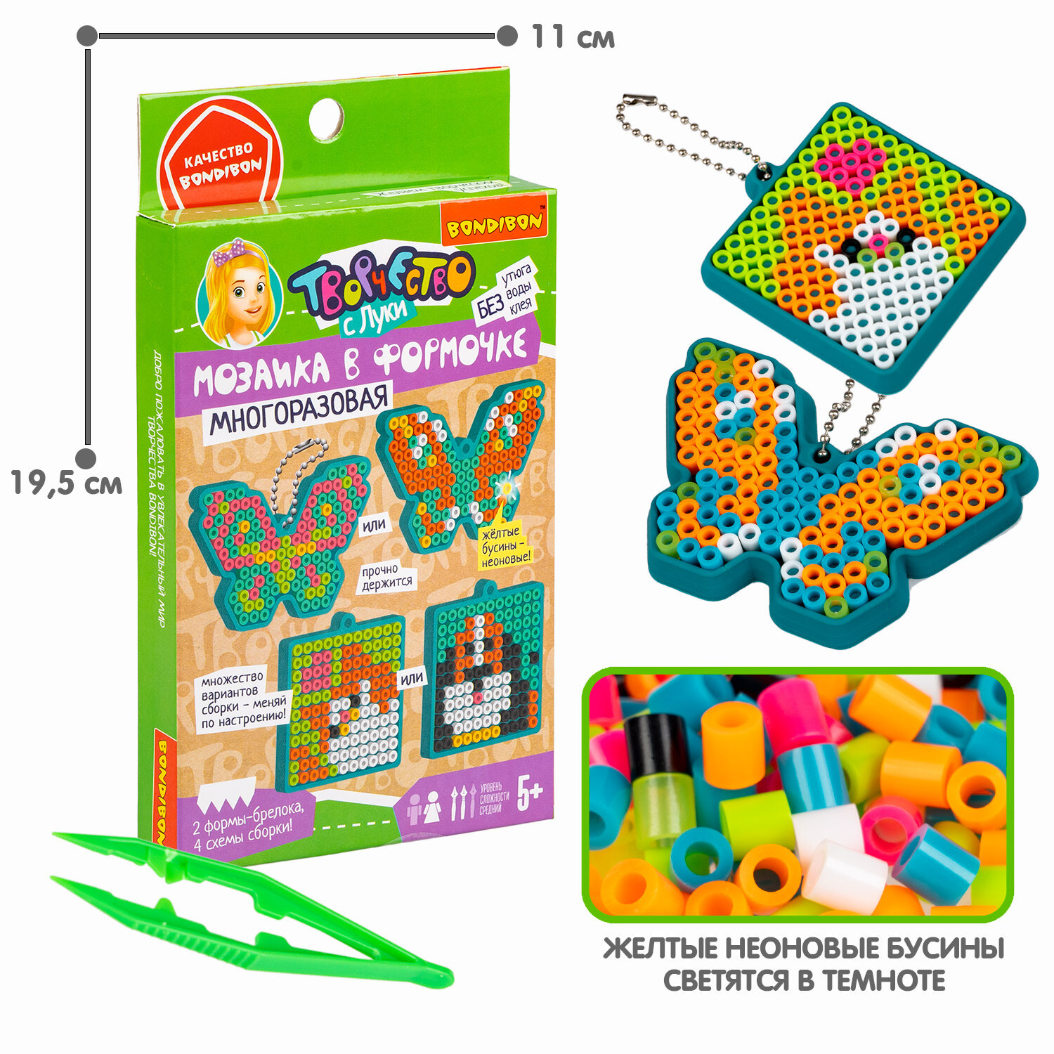 Купить Набор для творчества Bondibon Мозаика с формами многоразовая Кошка, собака, бабочки, 2 формы