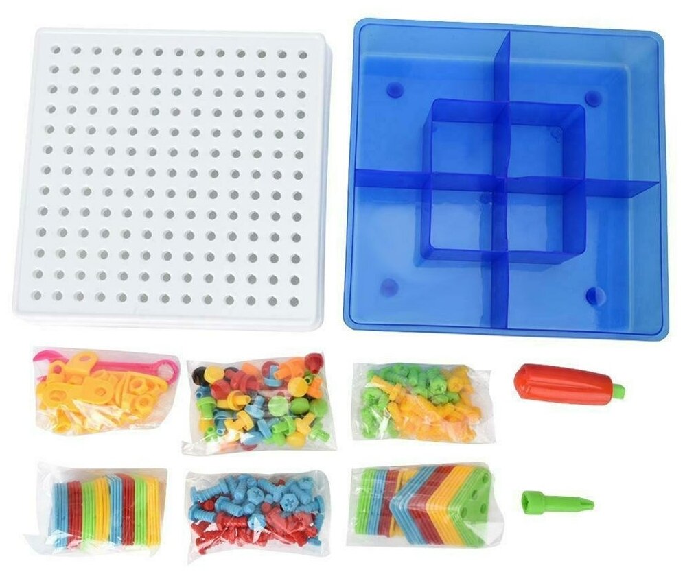 Купить Развивающий детский конструктор мозаика с шуруповертом на батарейках 237 предметов