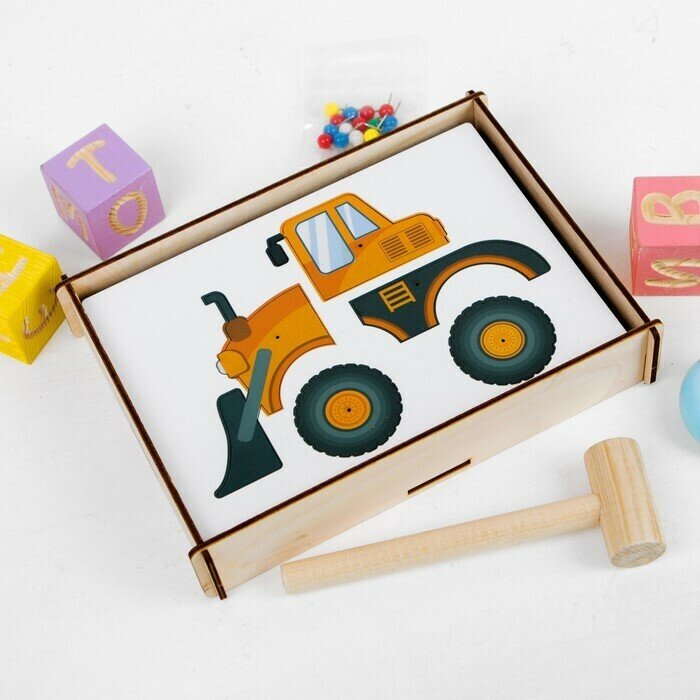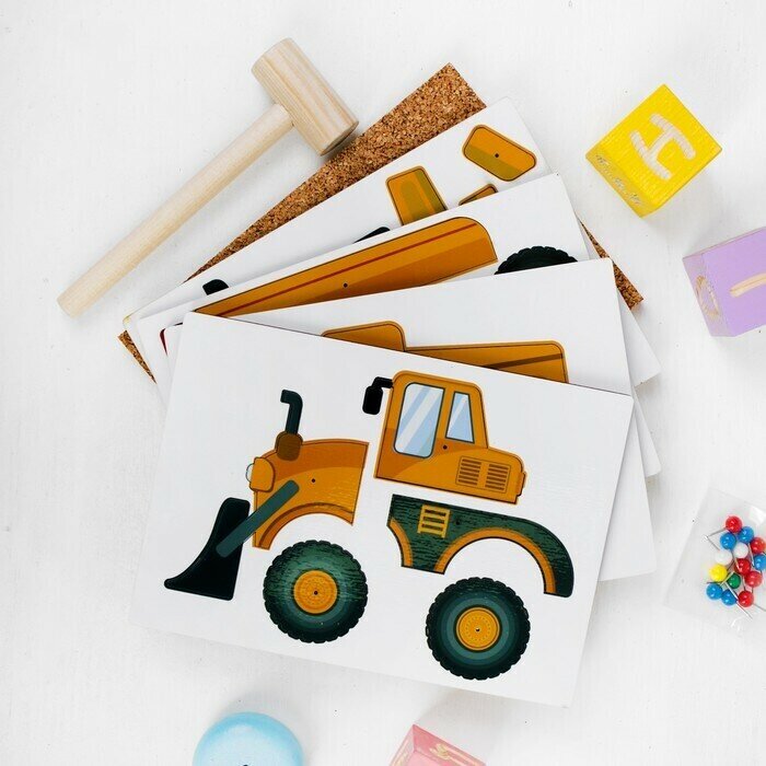 Купить Развивающий деревянный конструктор-мозаика "Строительная техника", пазл-головоломка с молоточком