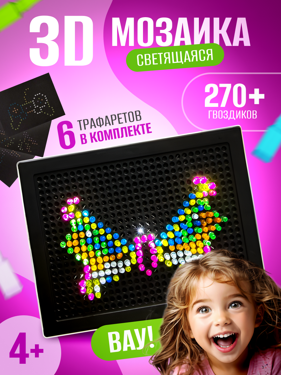 Светящийся конструктор-мозаика Light circle, 270 деталей, 6 карточек интересное: