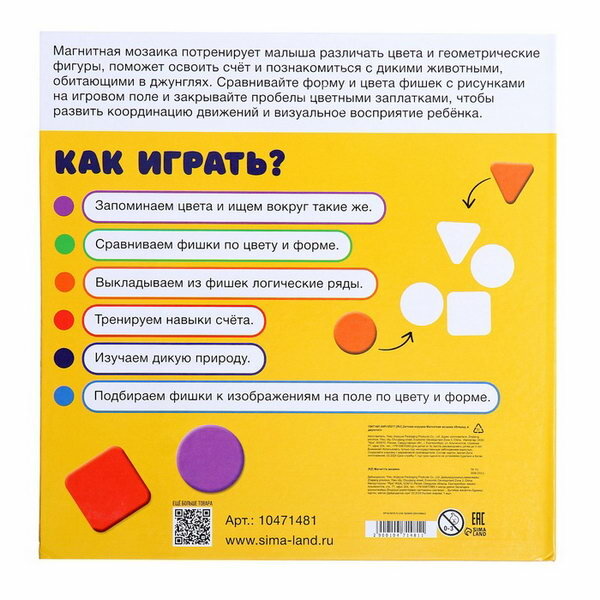 Магнитная мозаика "Вперед, в джунгли!", 80 магнитов, 3+, развитие навыков: воображение интересное: