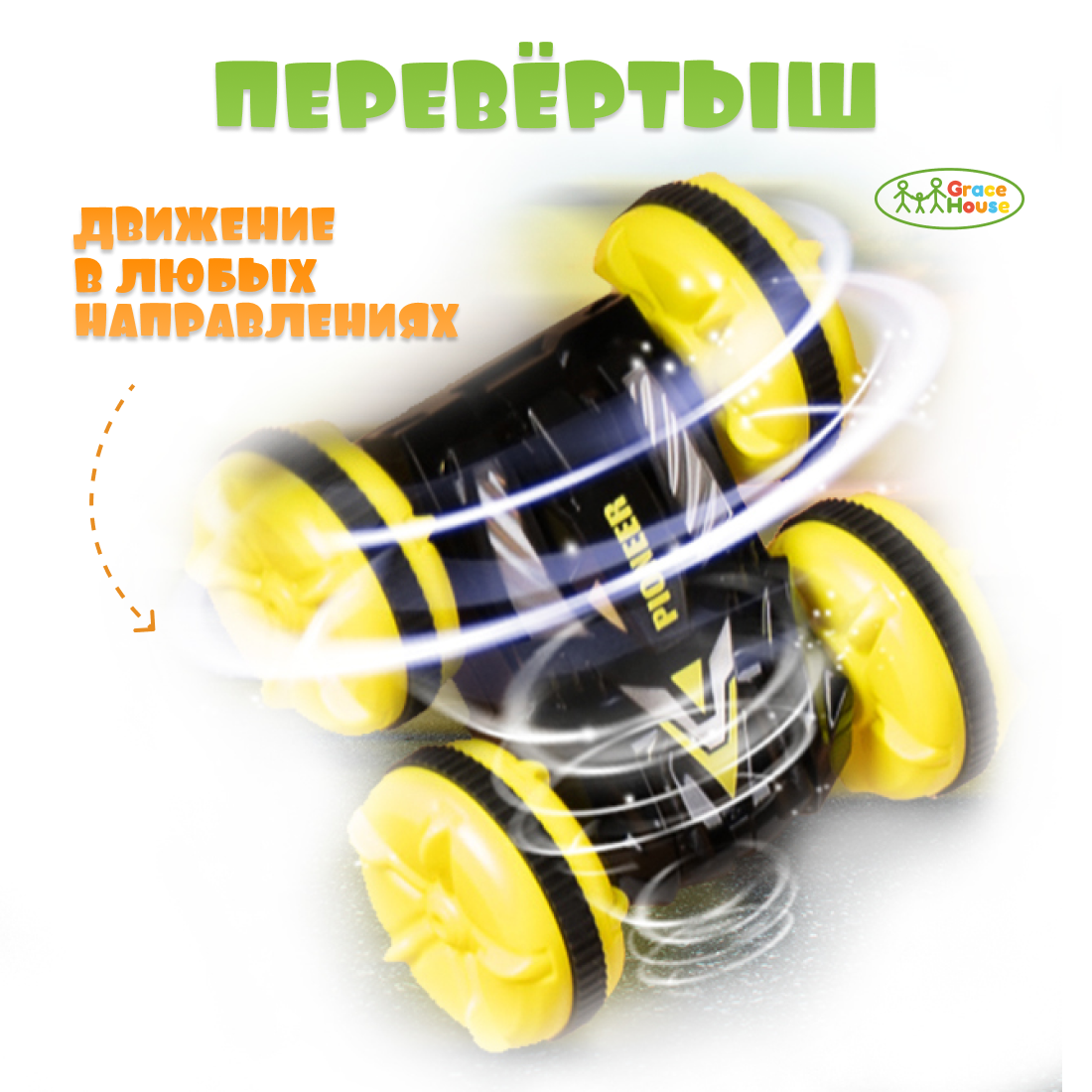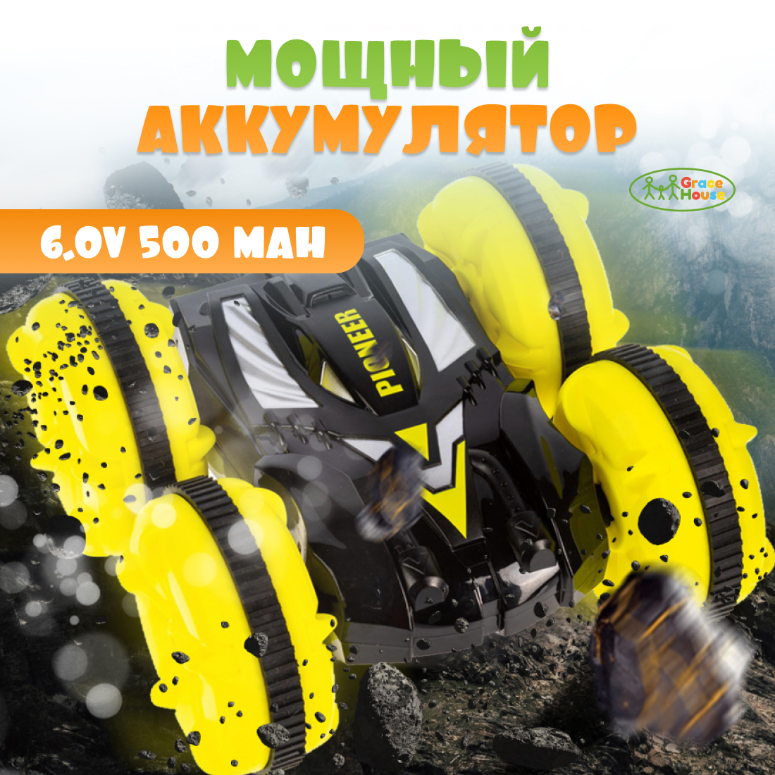Машинка на пульте управления GRACE HOUSE амфибия перевертыш желтая интересное: