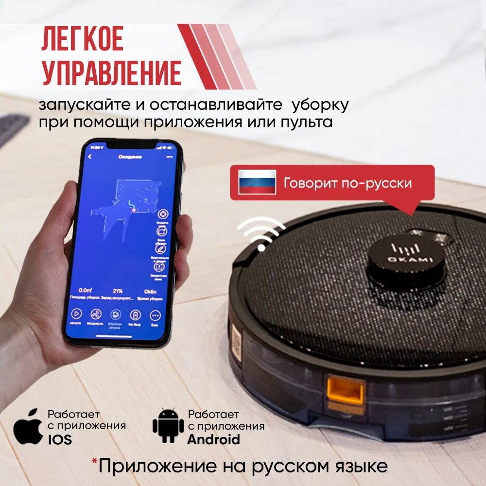 После покупки понял что этот аппарат точно для меня и для тех у кого нет времени или кто просто ненавидит пылесосить и любит всякие приложения и технологии, робот-пылесос Okami U100 Laser Plus идеально вам подойдет. Этой моделью можно даже управлять издалека через связанное приложение в телефоне. Вы также можете создавать программы автоматической очистки в приложении. Очень рад покупки.