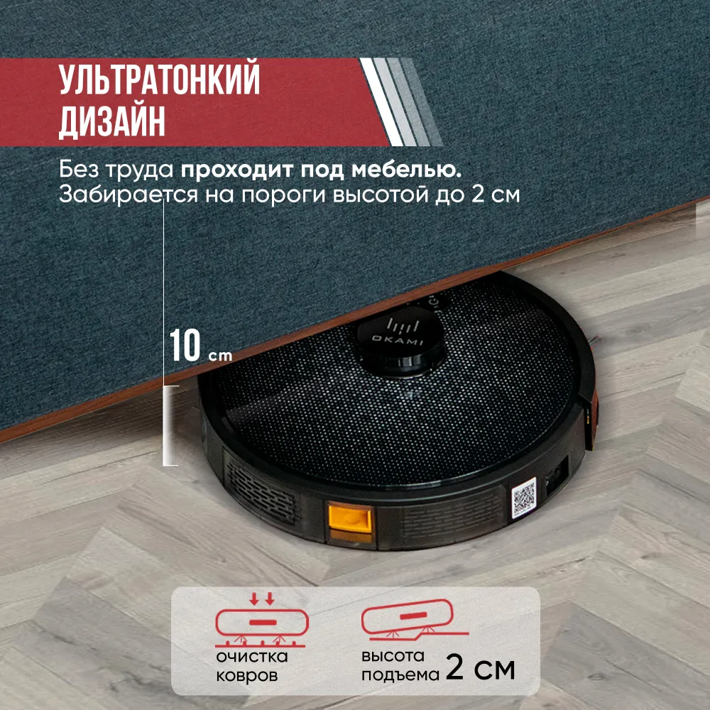 Зарекомендовавший себя робот пылесос Okami U100 Laser Plus. Был куплен вторым на дачу. Очень результат достойный от его уборки, особенно когда с ковров надо убрать шерсть нашей собаки. В этой модели функция влажной уборки, можно регулировать уровень подачи воды в приложении. Реально удобно и реально есть результат от его использования.