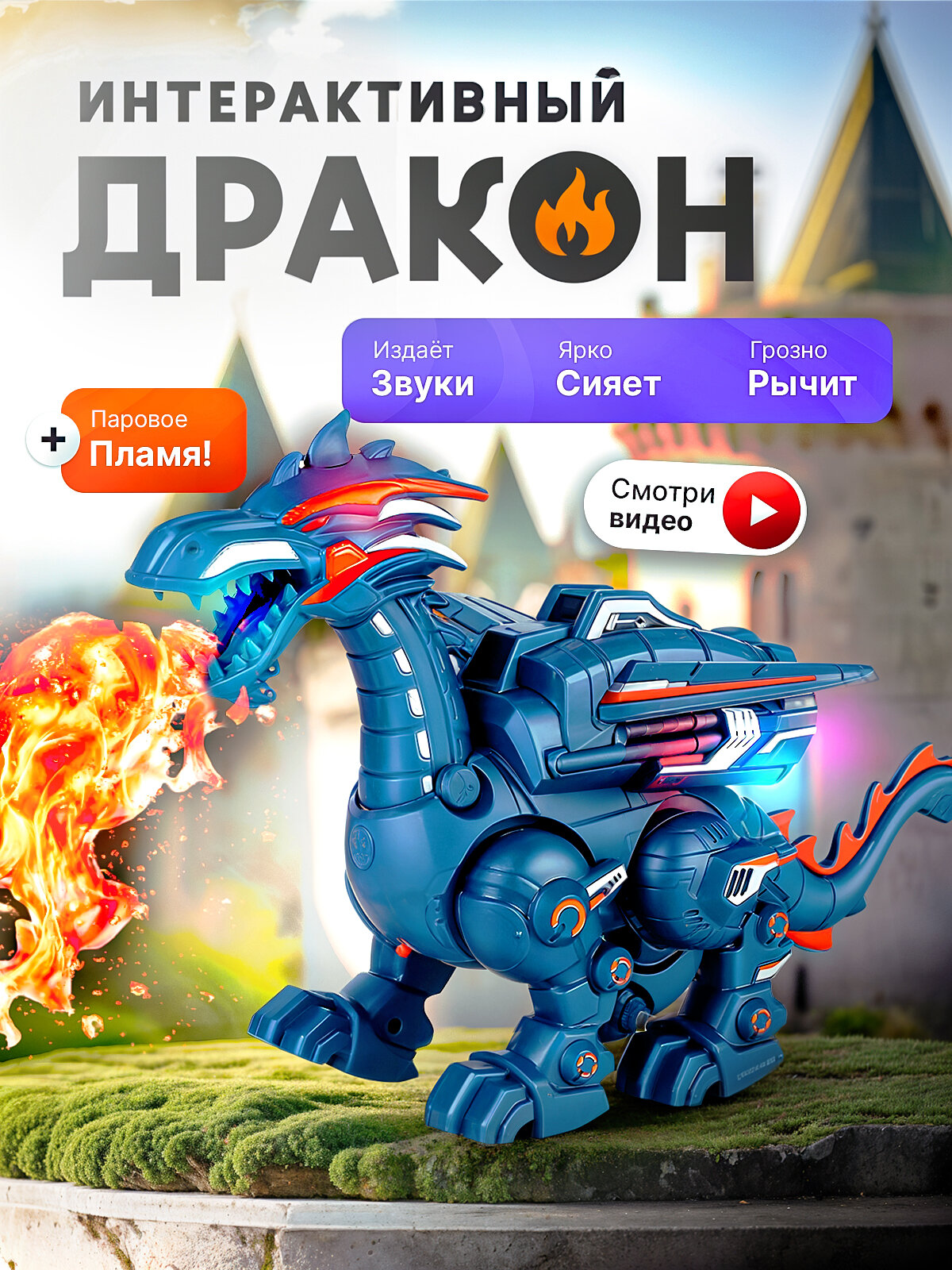 Купить Интерактивный дракон, игрушка для детей робот динозавр со светом, звуком и паром - SHARKTOYS