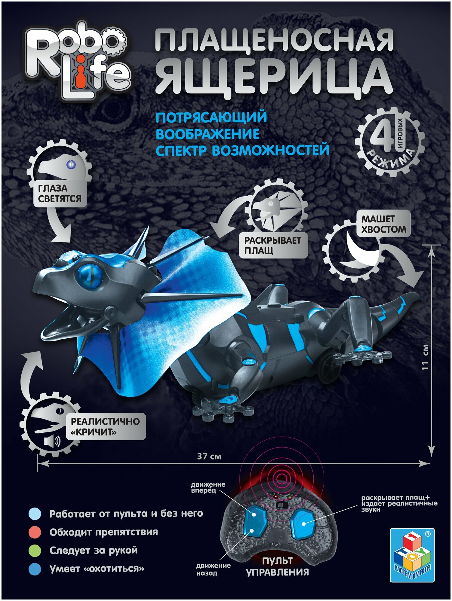 Игрушка на р/у Robo Pets - Плащеносная ящерица (на бат, свет, звук) интересное: