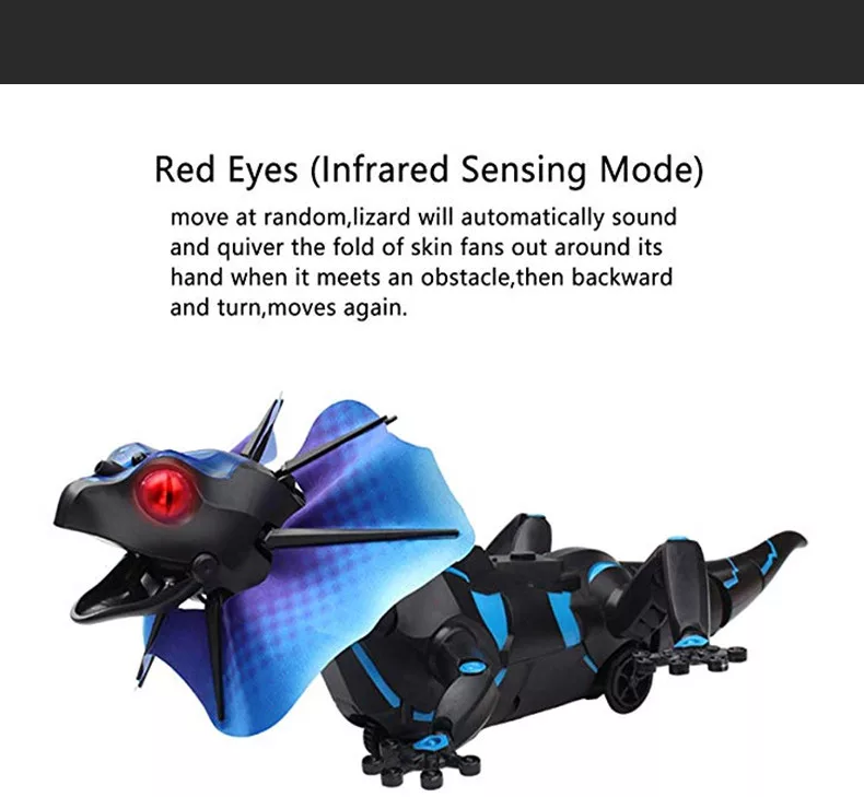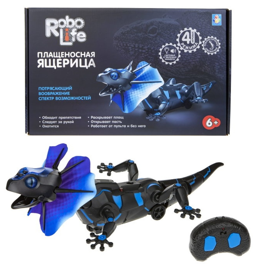 | Дополнительная информация | 4 игровых режима со световой индикацией: 1 - работа от пульта, 2 - обход препятствий, 3- следование за рукой, 4- охота; размеры пульта: 10 х 8 х 2 см; радиус действия пульта: до 10 м; в процессе игры с ящерицей ребенок сможет развить моторику пальцев, координацию движений |