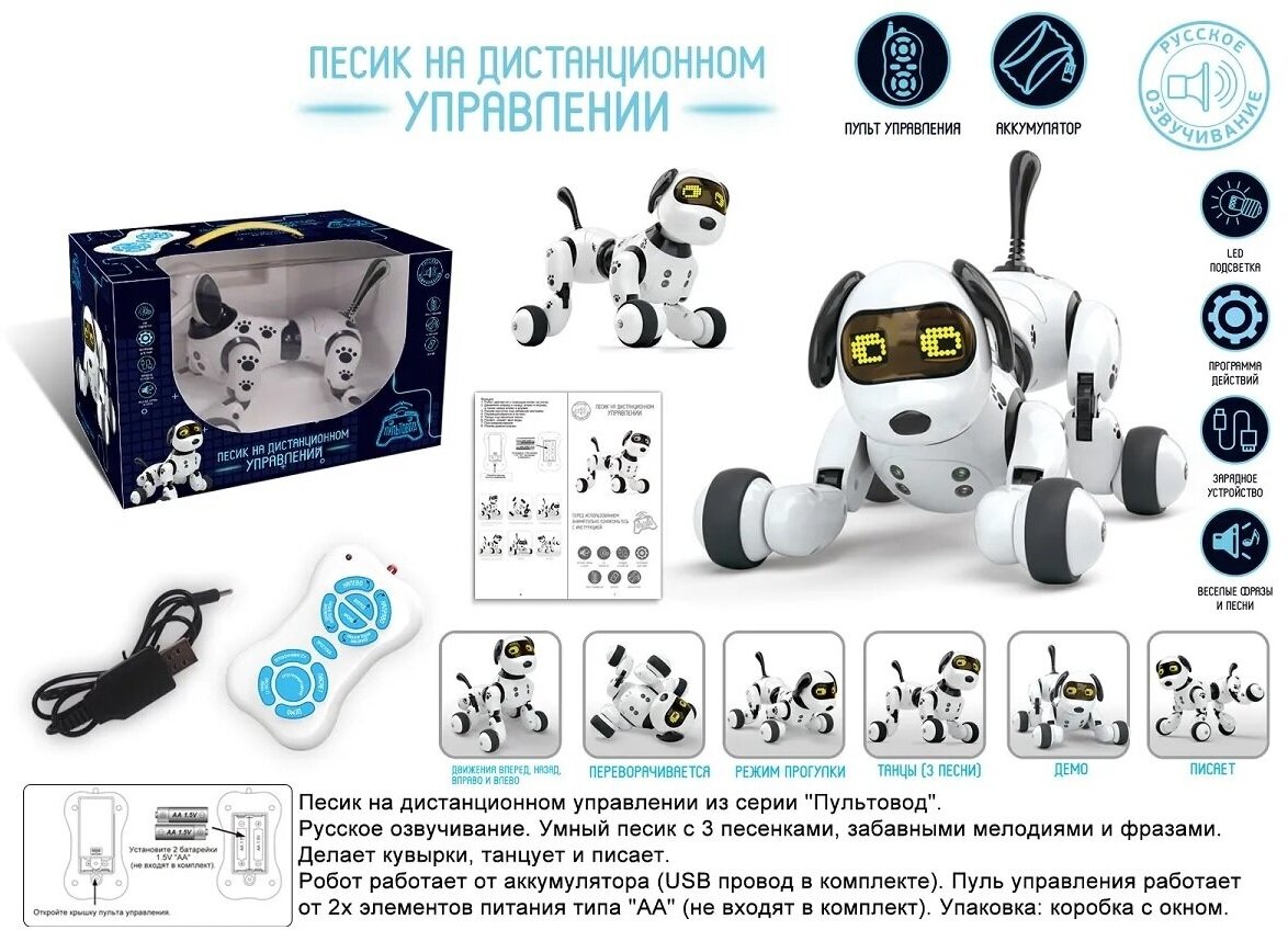 Купить Интерактивная игрушка на аккумуляторе Робот-собака Далматинец на пульте управления, свет, звук, программирование