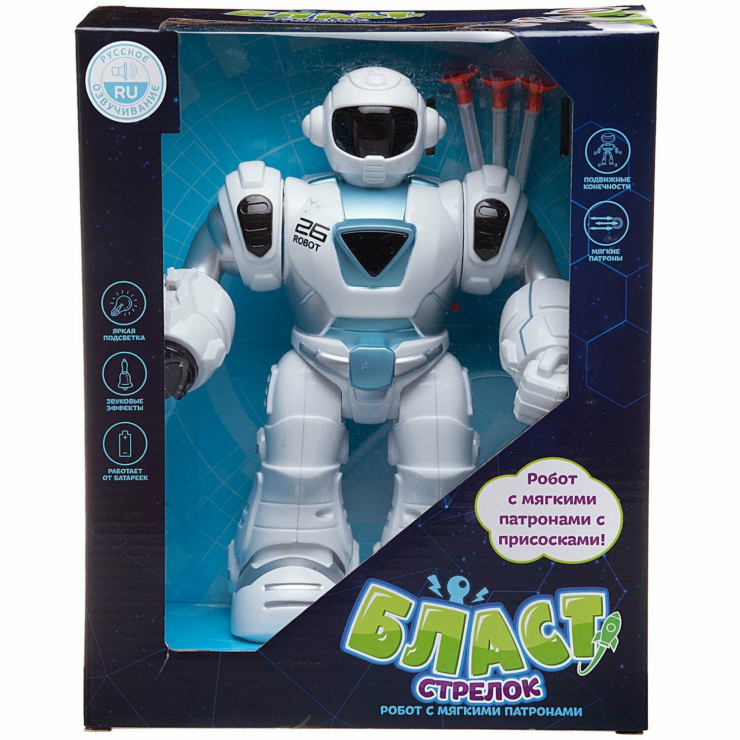Робот Junfa Бласт Стрелок электромеханический свет/звук бело-голубой ZY1214875/голубой интересное: