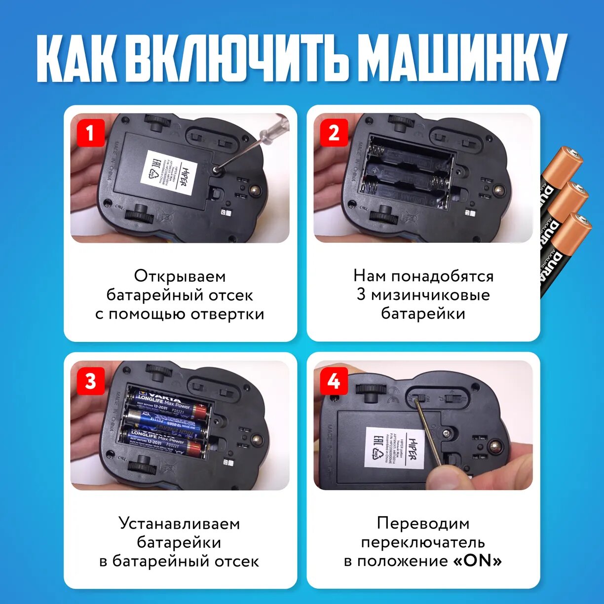 | Дополнительная информация | Дополнительно необходимо докупить 3 батарейки размера ААА (не входят в комплект) |