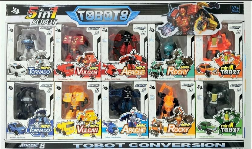 Набор роботов - трансформеров 10 шт, высота 10 см / Мини - роботы, 8шт в подарочной коробке / Игрушка для мальчика интересное: