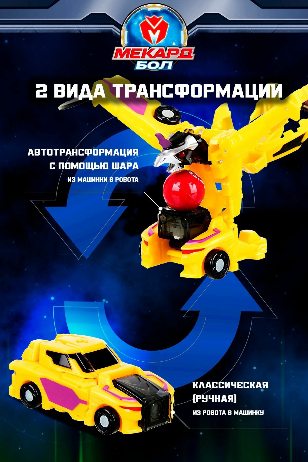 Игрушка-трансформер Мекард бол (Mecard ball), мини, Джэз, MAB-006