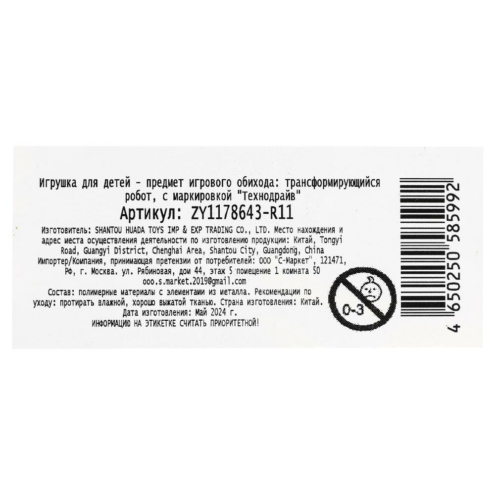 СохранитьРобот трансформирующийся в знак (минус) Технодрайв ZY1178643-R11 интересное: