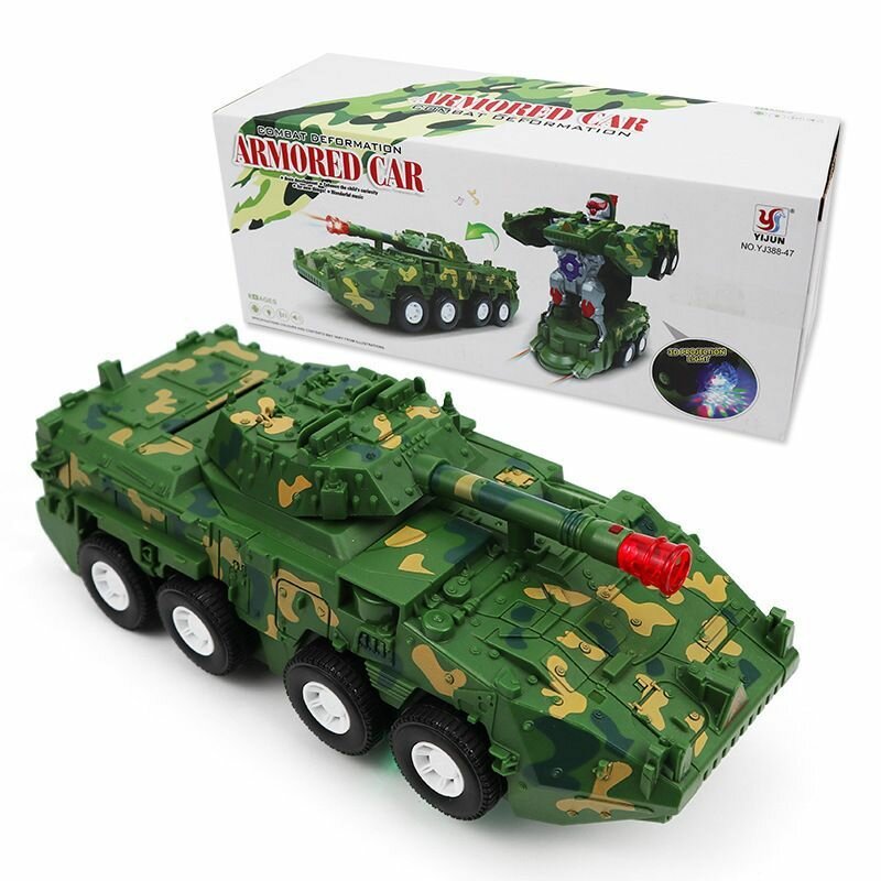 Купить Музыкальная машинка, робот-трансформер броневик "ARMORED CAR" на батарейках С 3D светом