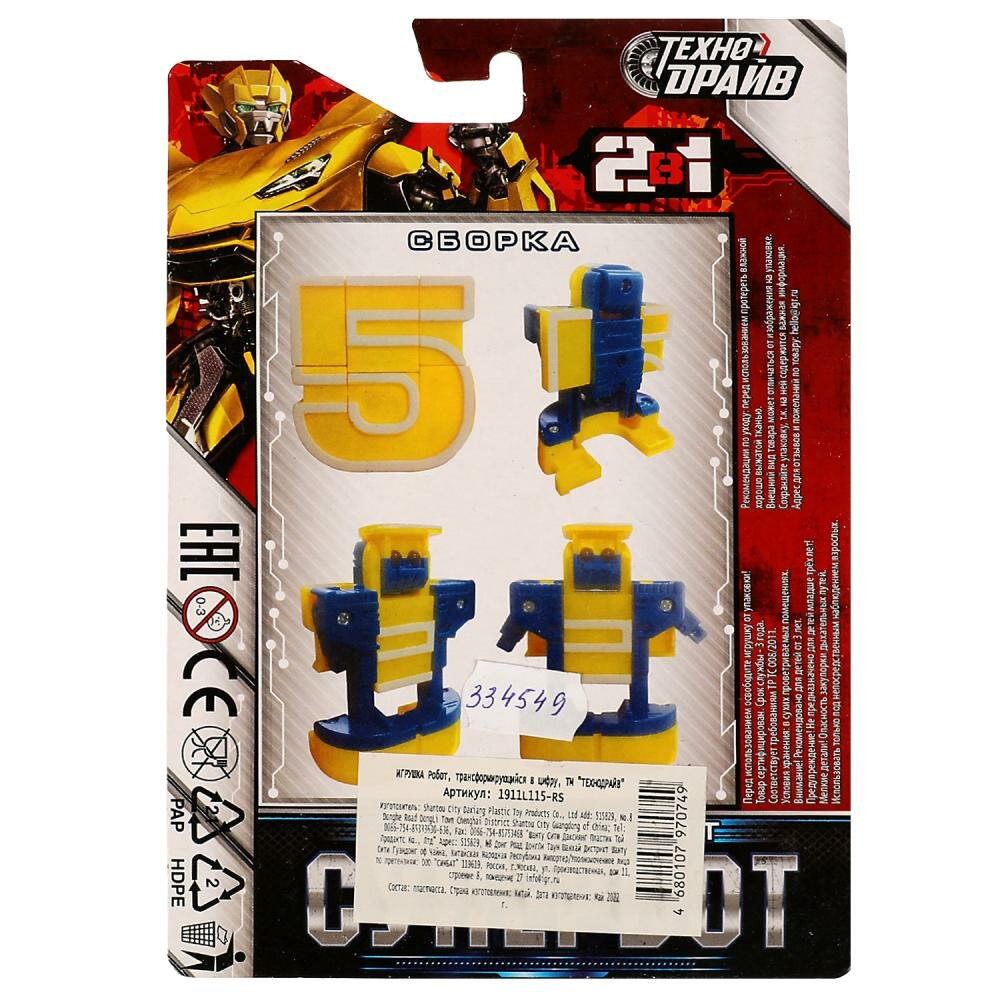 Робот Супербот, трансформирующийся в цифру 5 технодрайв 1911L115-RS интересное: