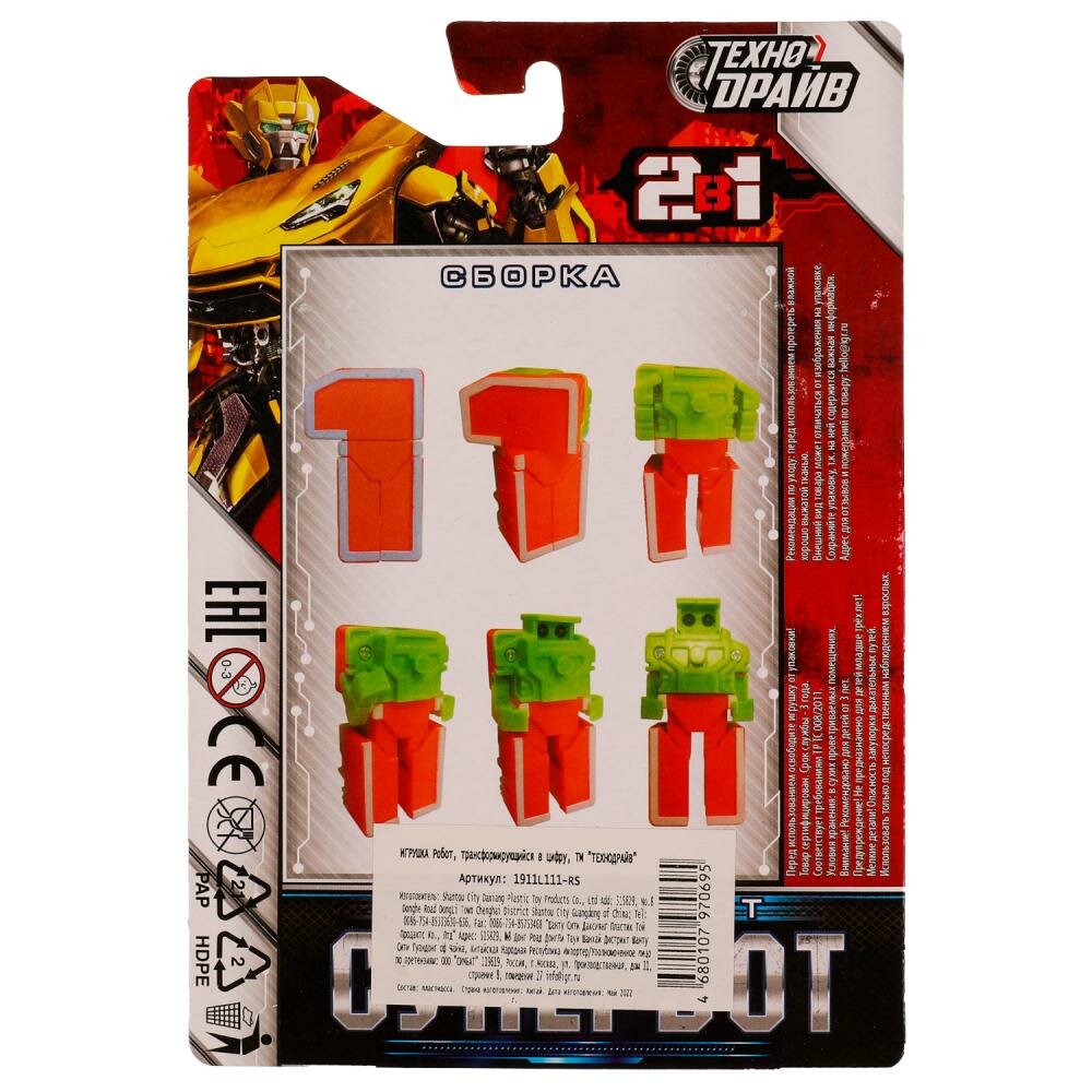 Робот Супербот, трансформирующийся в цифру 1 технодрайв 1911L111-RS интересное:
