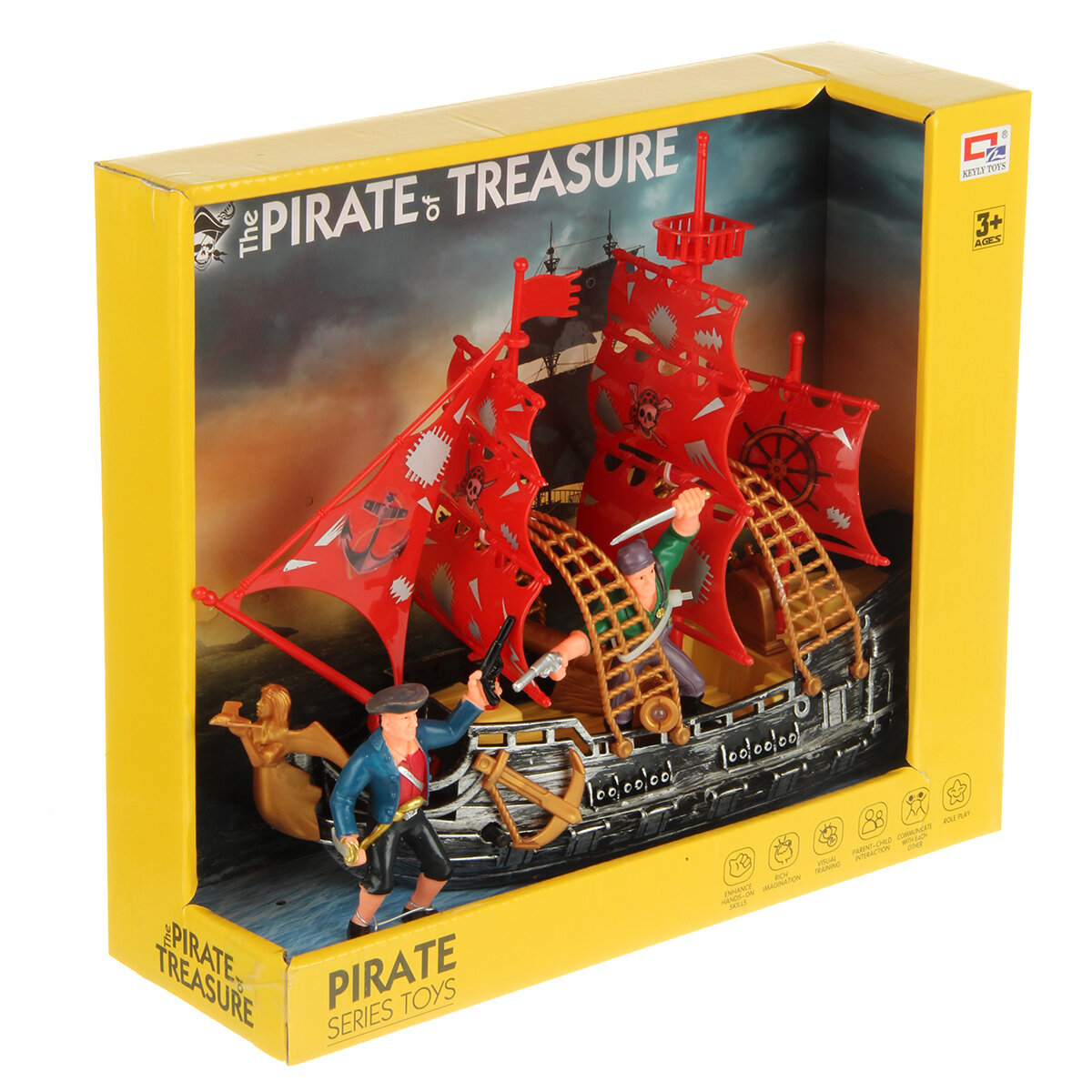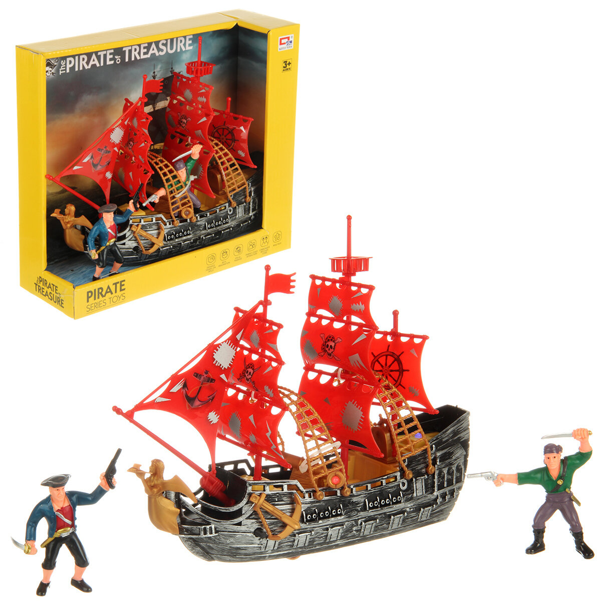 | Комплектация | В наборе корабль, 4 фигурки пиратов, пушка, 4 ядра, пальма, кустарник, 4 камня имитации драгоценных камней, инструкции по сборке пальм, съемным деталям корабля, работе пушки. |