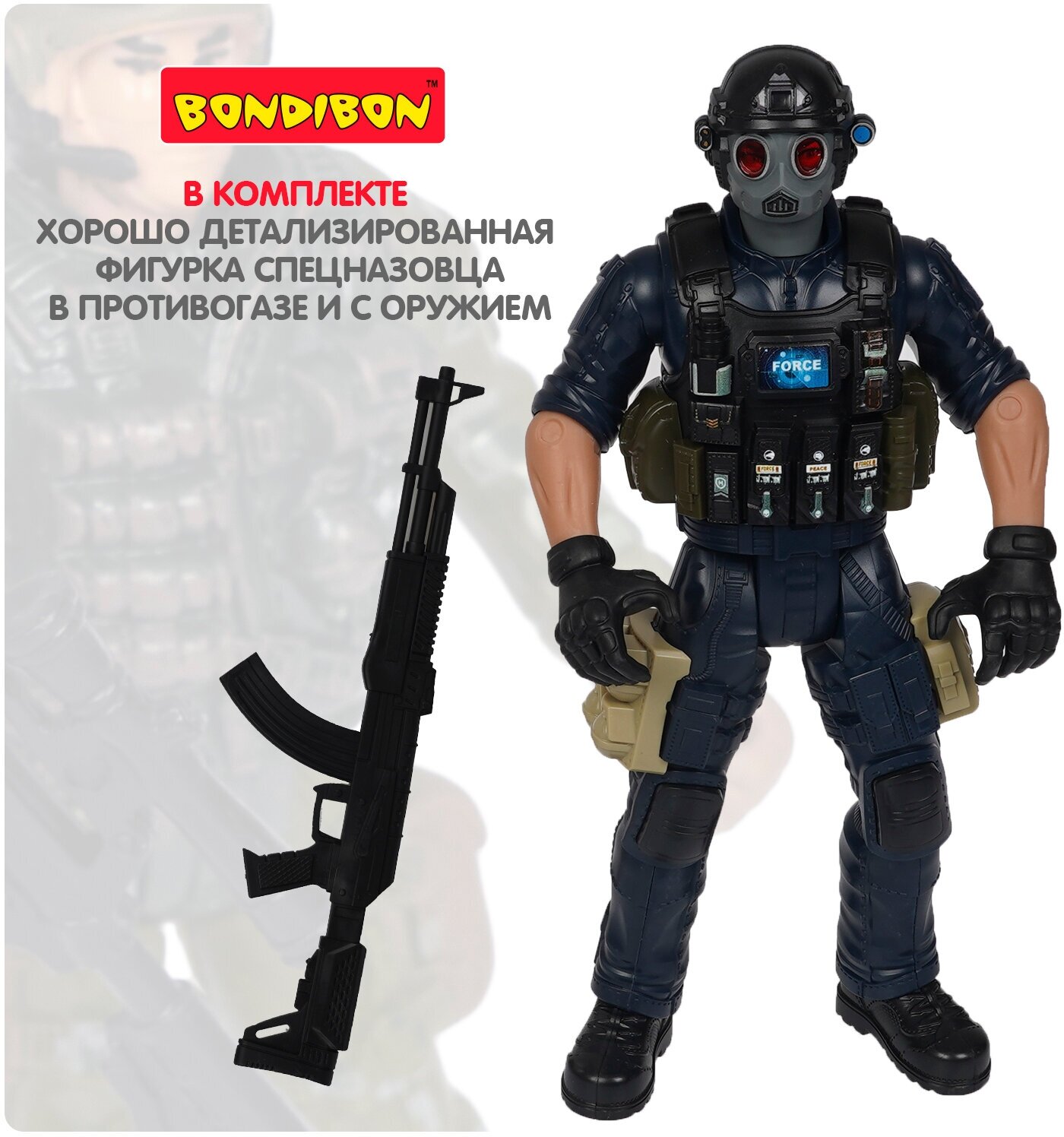 Набор солдат 31 см с оружием, " настоящий боец" Bondibon, BOX 40,5x15x6,5см , спецназовец в маске и