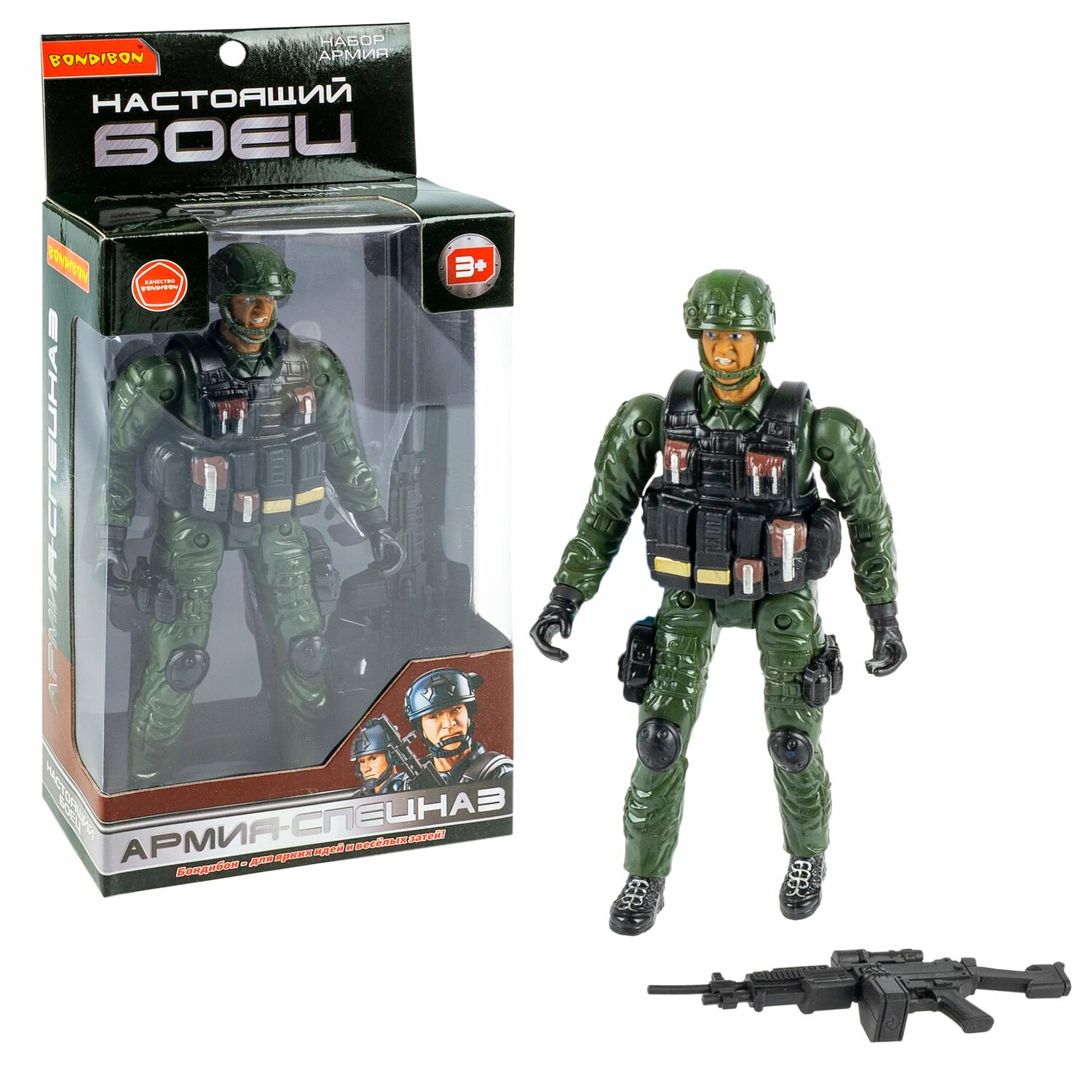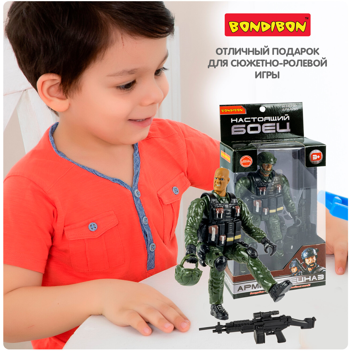 Купить Фигурка солдат армеец с оружием "настоящий боец" Bondibon военный солдатик в шлеме, 18,5 см