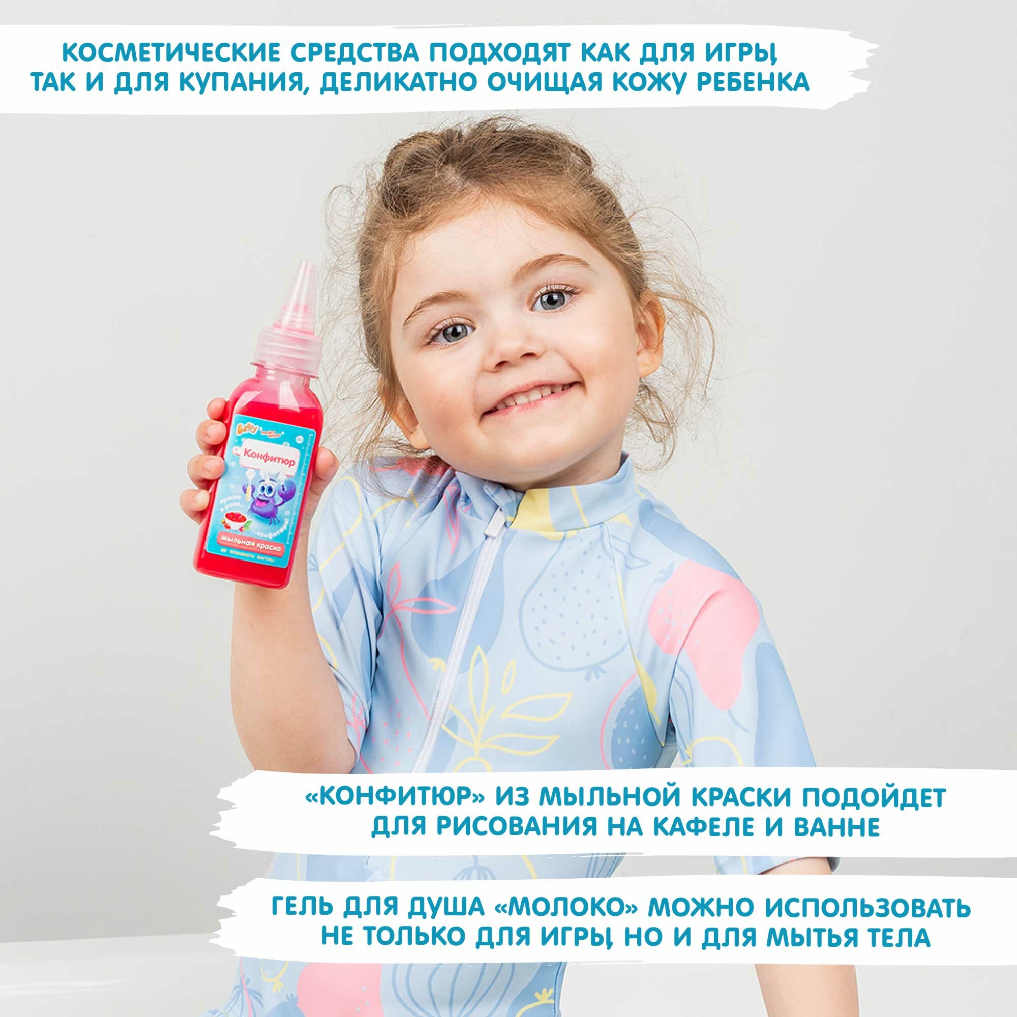 | Комплектация | Мыльная краска "Конфитюр" - 1 шт. / Мыльный пластилин "Тесто" - 1 шт. / "Ягоды" - 2 шт. / "Посыпка для декора" - 2 шт. Лопатка - 1 шт. / Нож столовый - 1 шт. / Скалка - 1 шт. / Тарелка плоская - 1 шт. / Вилка - 1 шт. / Разделочная доска - 1 шт. Игрушки из мягкого непромокаемого материала - 18 шт. Прямоугольник - основа для наклейки рецепта. |