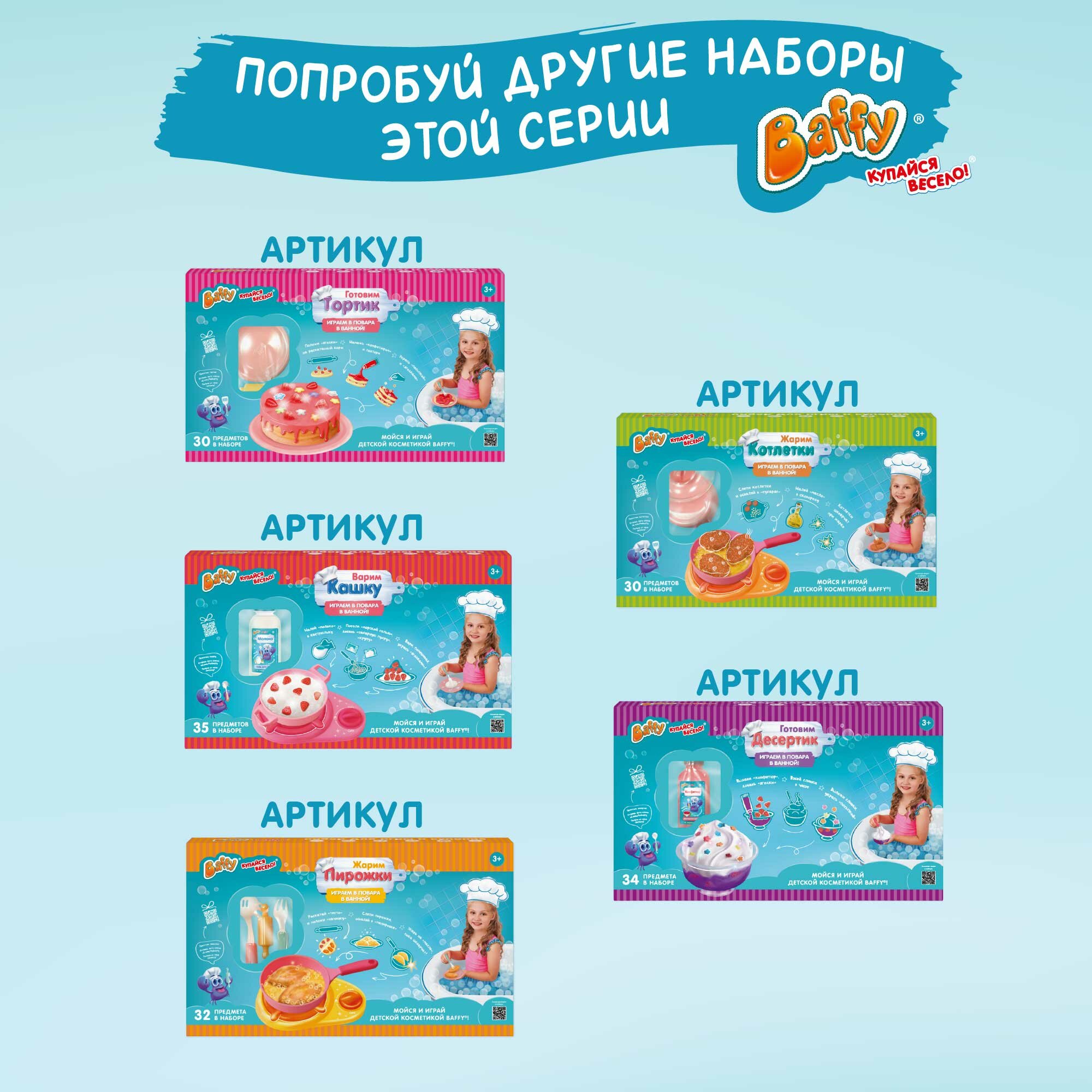 Набор игровой Baffy, для ванной, "Жарим котлетки", пластик, 30 предметов, купайся весело.