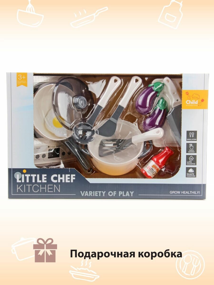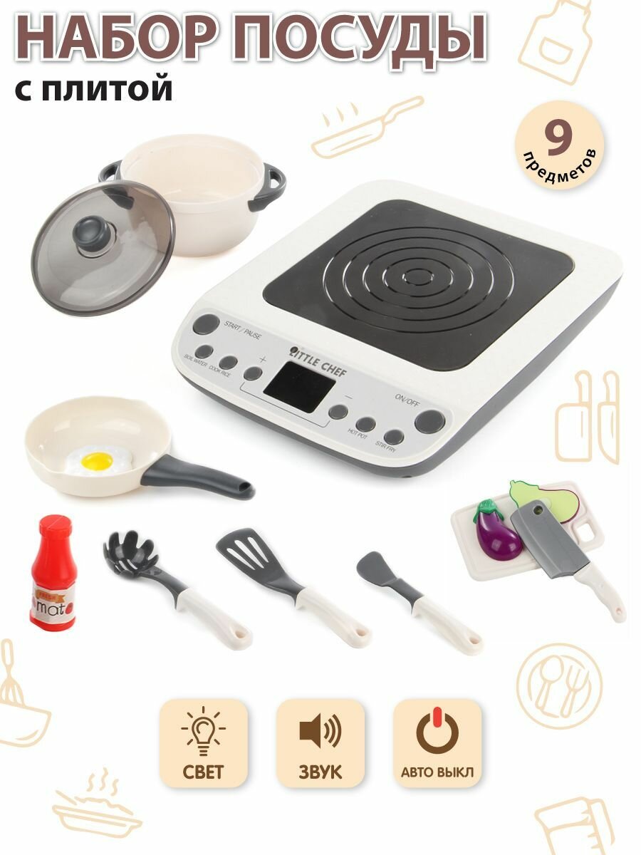 Купить Детский игровой набор посуды с плитой, 9 предметов, Veld Co / Игрушечная бытовая техника со светом и звуком для детей