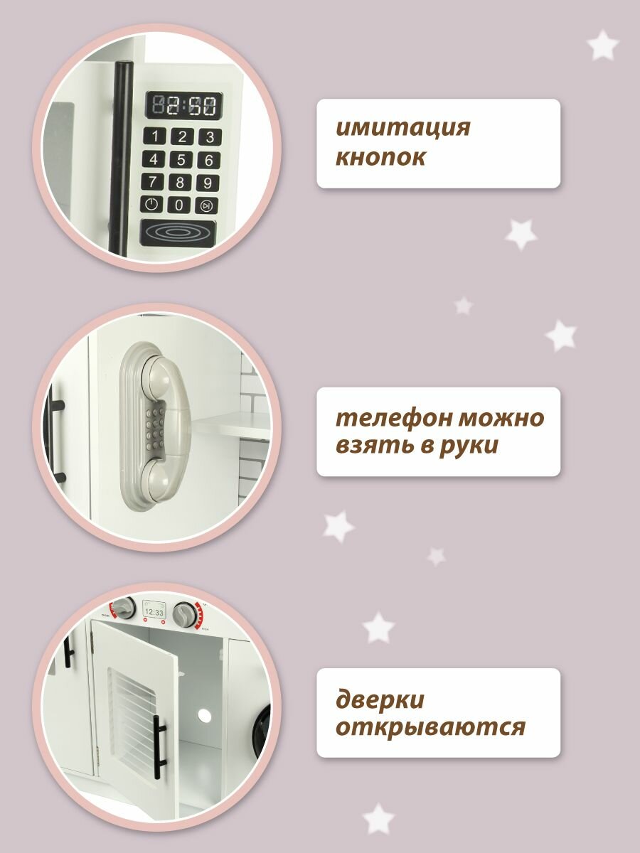 Детская деревянная кухня "Моди" со светом и звуком, Lisa Doll / Игровая кухня с посудой и аксессуарами для детей