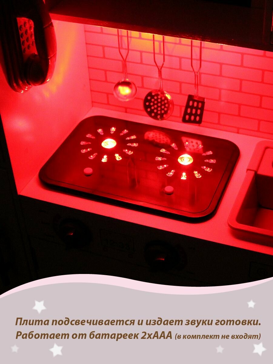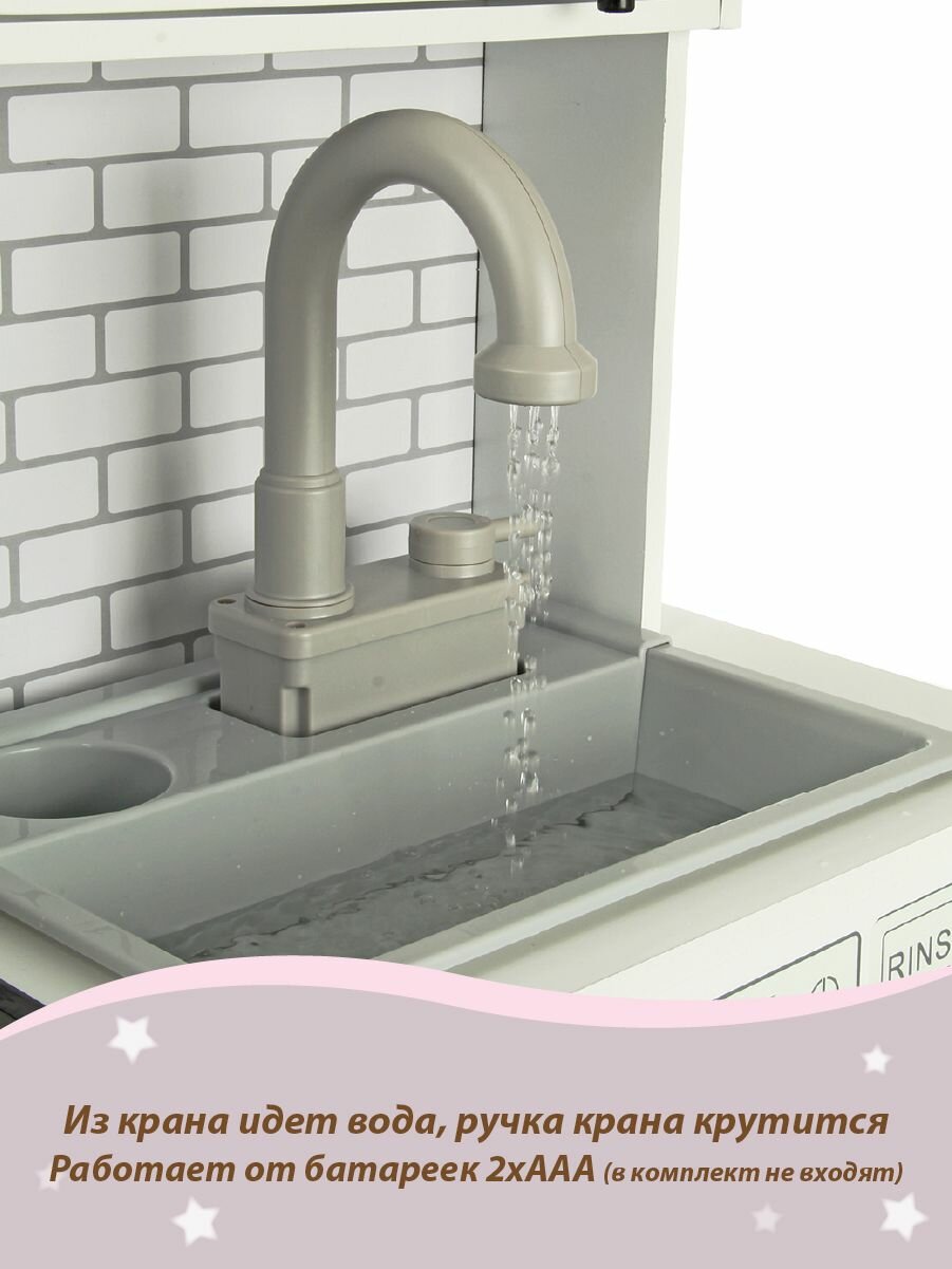 Детская деревянная кухня "Брауни" с водой, светом и звуком, Lisa Doll / Игровая кухня с посудой и аксессуарами для детей