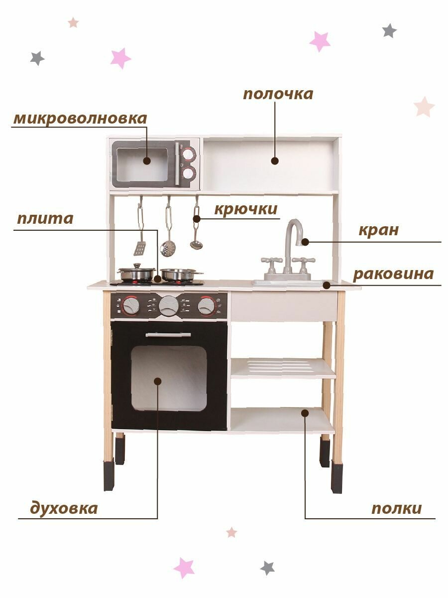 Купить Детская деревянная кухня "Сканди" со светом и звуком, Lisa Doll / Игровая кухня с посудой и аксессуарами для детей