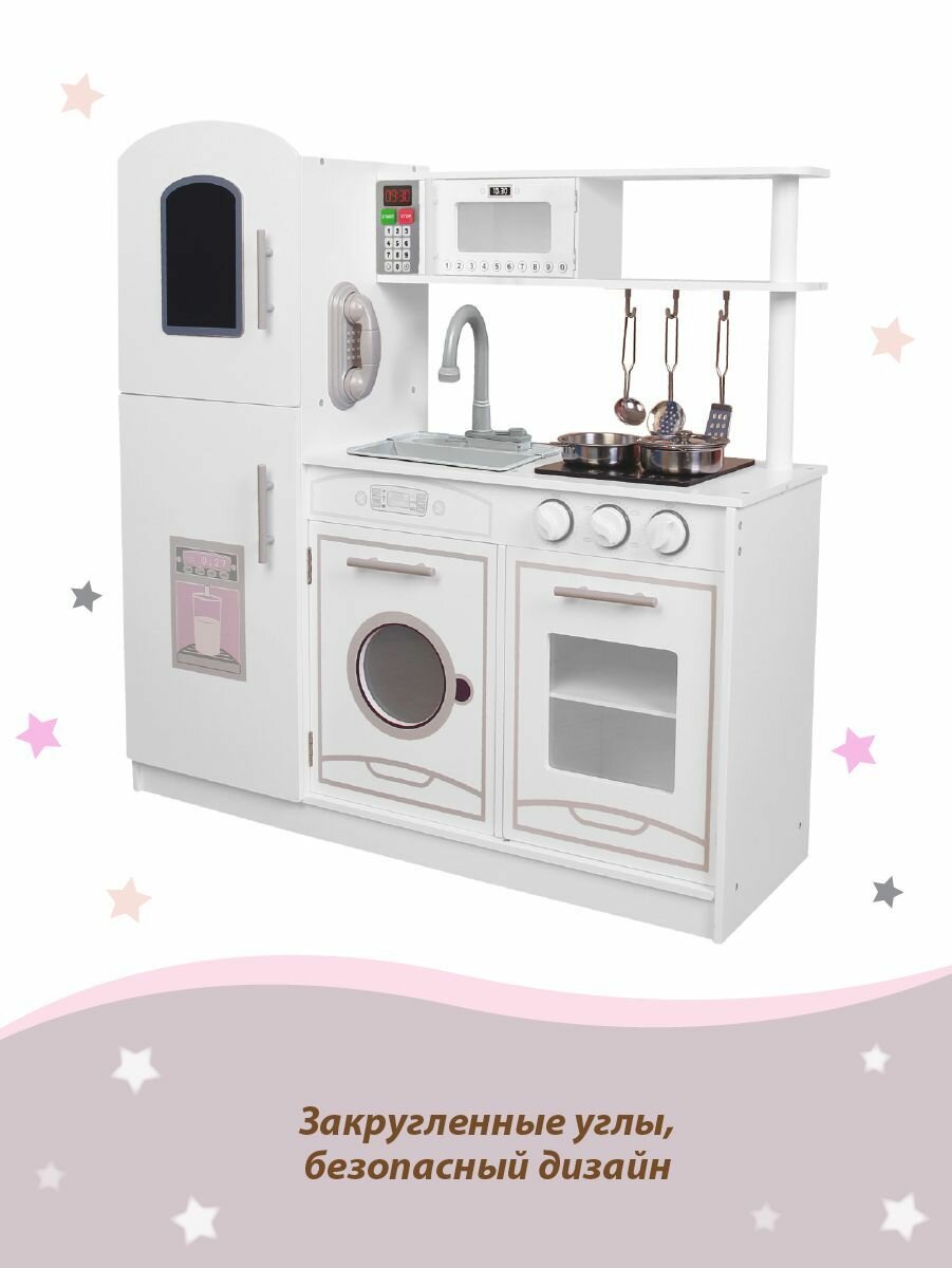 Купить Детская деревянная кухня "Бергамо" с водой, светом и звуком, Lisa Doll / Игровая кухня с посудой и аксессуарами для детей