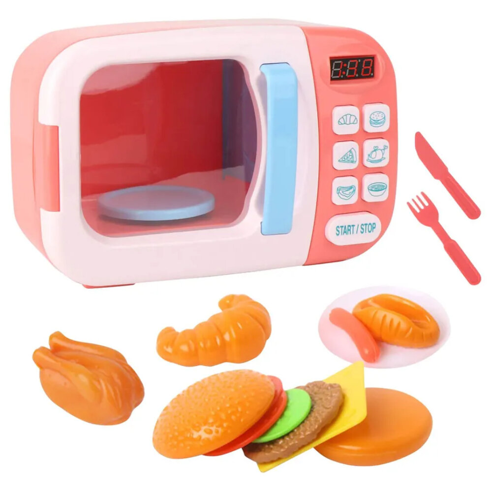 Купить Игрушечная микроволновая печь с аксессуарами для девочки 23 х 12 х 15 см, дисплей с отсчетом времени