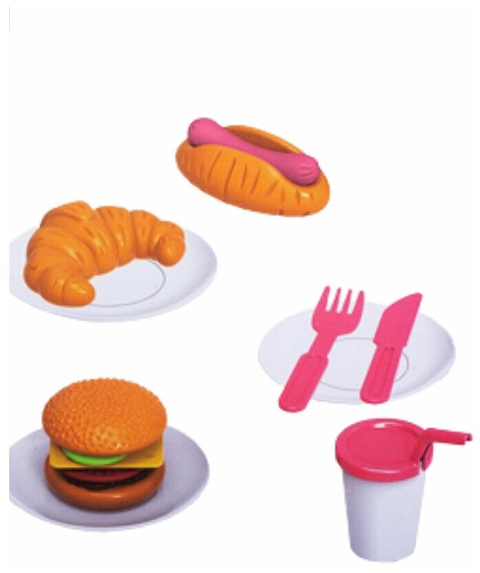 | Комплектация | - игрушка микроволновая печь / - игрушечные продукты: курица / сборный гамбургер / сборная сосиска в тесте / круассан / нож / вилка / 2 стаканчика / тарелка. |