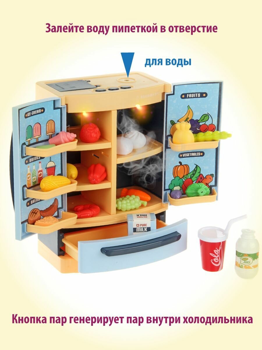 Детский игровой холодильник с аксессуарами, Veld Co / Игрушечная бытовая техника со светом и звуком / Холодильник с продуктами и подачей льда для детей, 109658