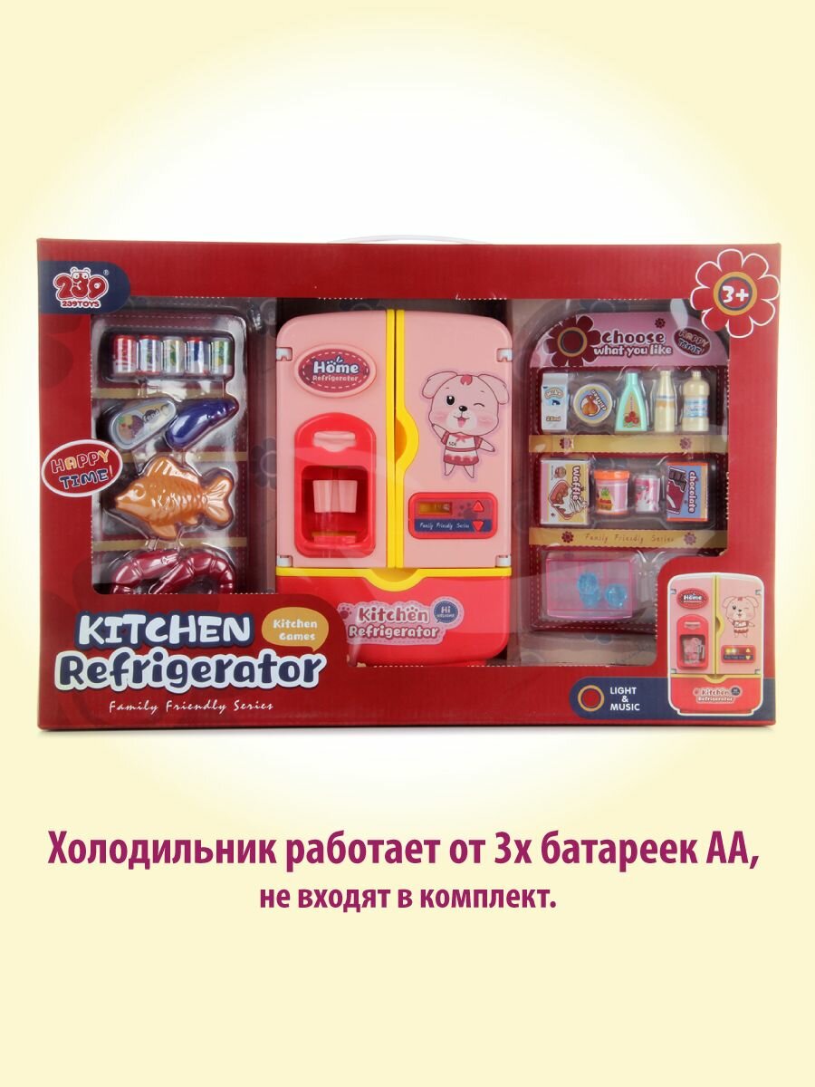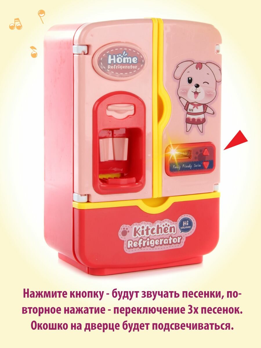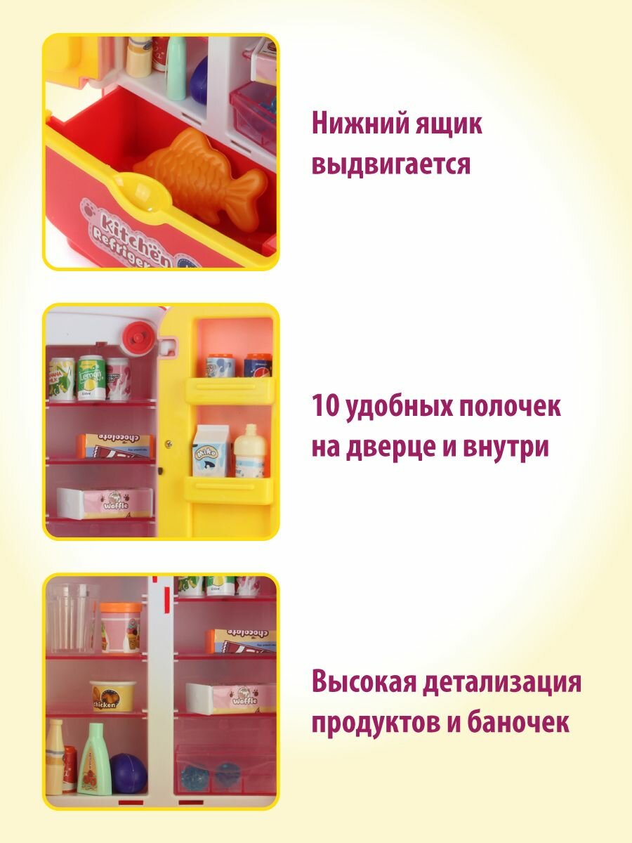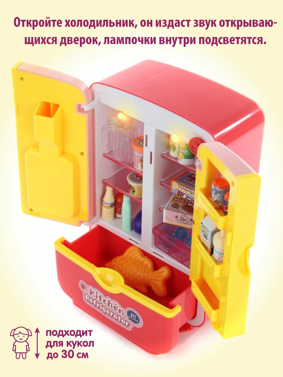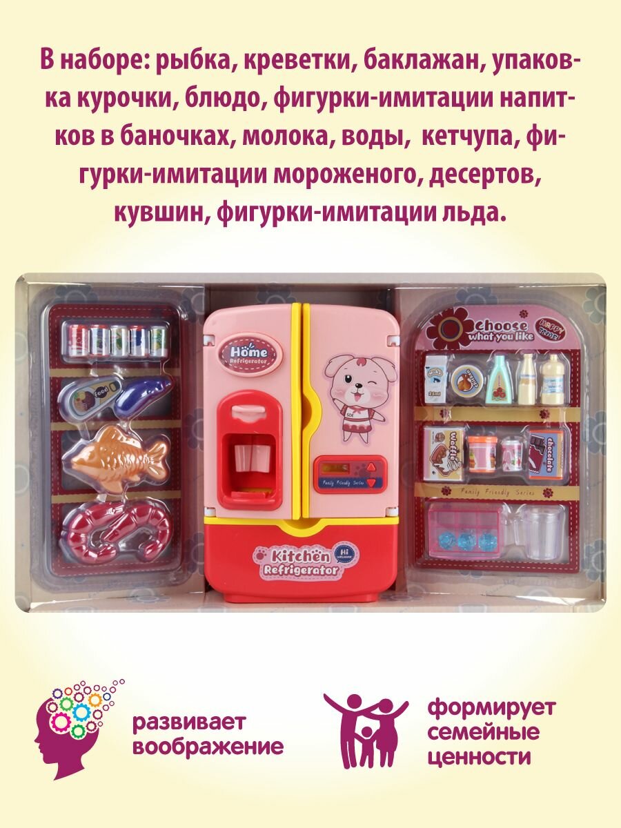 Детский игровой холодильник с аксессуарами, Veld Co / Игрушечная бытовая техника со светом и звуком / Холодильник с продуктами и подачей льда для детей, 119187