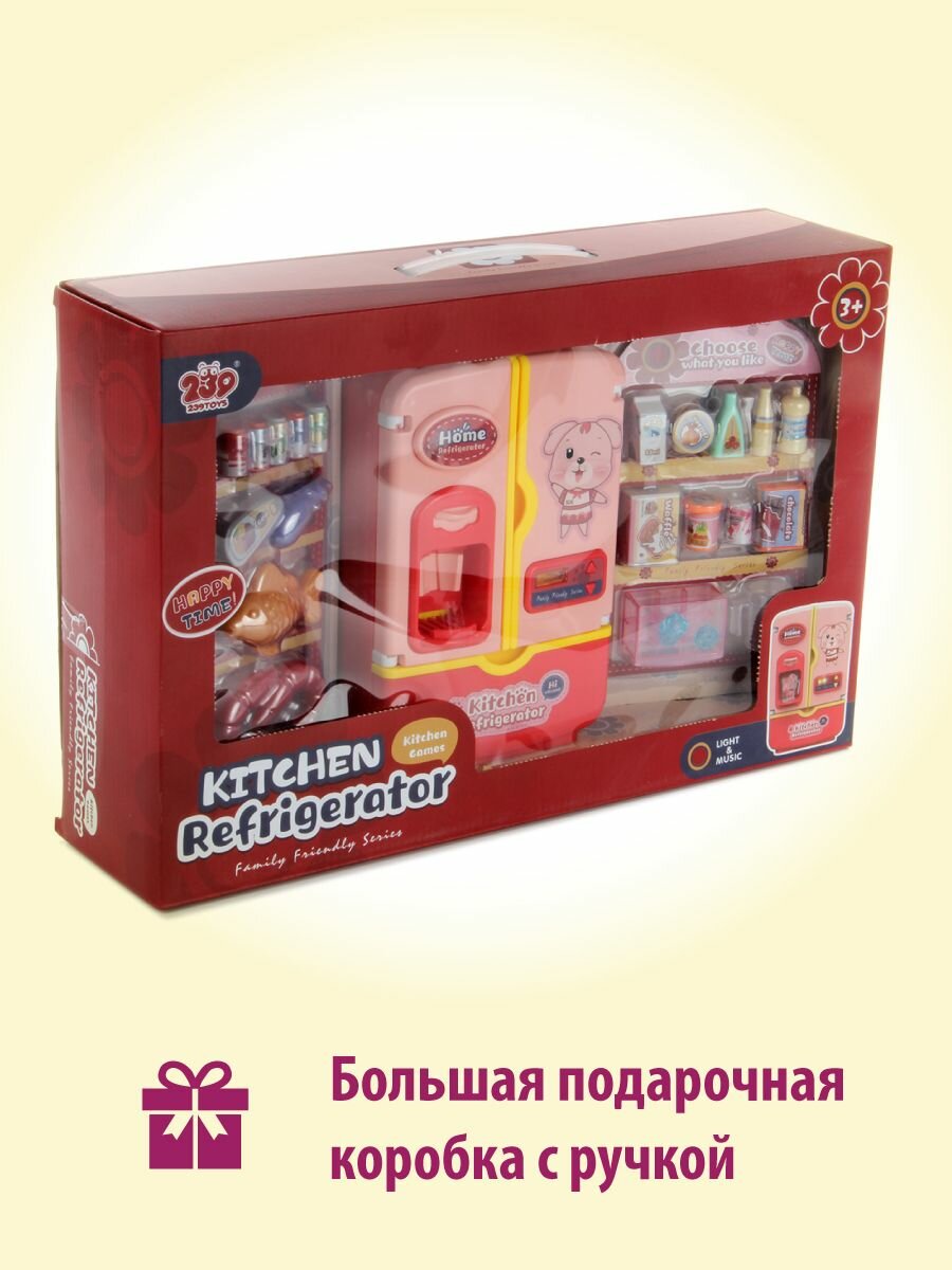 Детский игровой холодильник с аксессуарами, Veld Co Холодильник с продуктами и подачей льда для детей, свет и звук