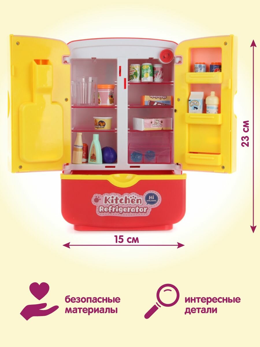 Купить Детский игровой холодильник с аксессуарами, Veld Co / Игрушечная бытовая техника со светом и звуком / Холодильник с продуктами и подачей льда для детей, 109658